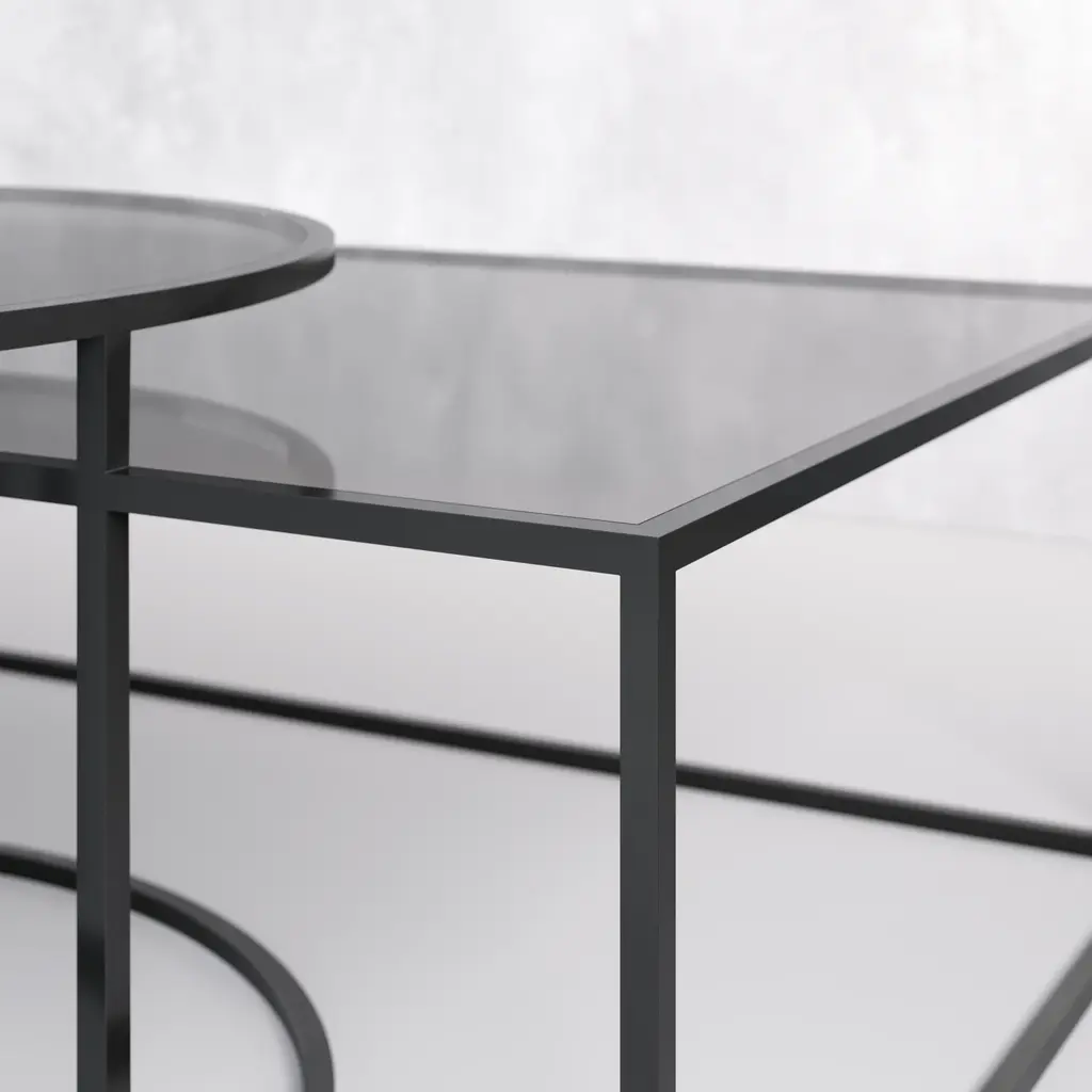 Tempered glass is supported by a powder-coated metal frame. Our Zadar coffee table is striking it its geometric form. Reminiscent of an abstract piece of artwork, the array of lines and curves will elevate your space. Full of contemporary contrast, our Zadar coffee table is suitable for any modern living room. Create a focal point while maintaining a refined look. Dimensions: 60.0''W x 50.3''D x 17.9''H Tear Sheet
