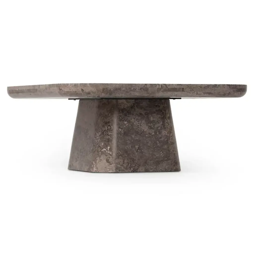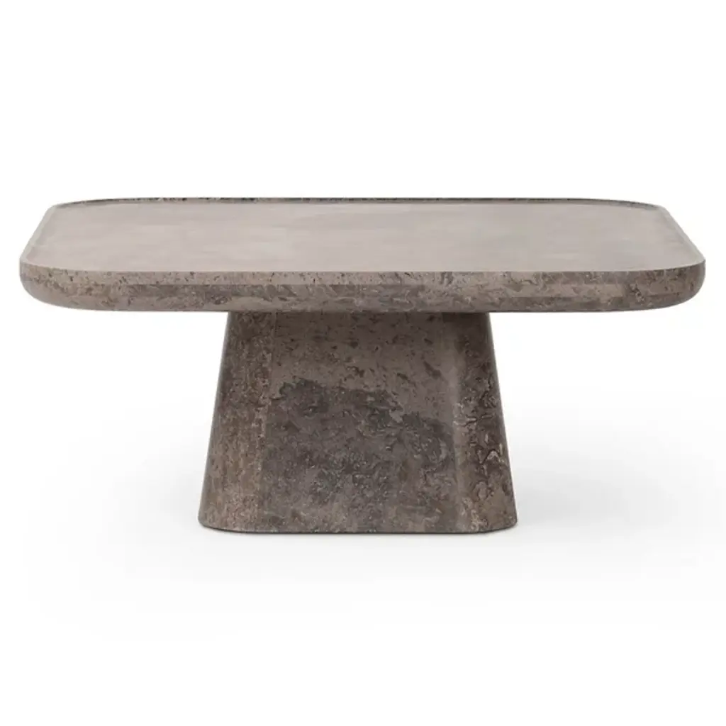 The Zane Coffee Table from Four Hands makes a statement with its solid marble construction and bullnose edging. The tray-style top adds a focused detail to the squared design, making it both beautiful and functional. This counter supports up to 100 pounds and is an anchor piece in living spaces. The naturally occurring patterns in the marble ensure that each piece has its own unique character. This table combines substance with style, offering a perfect surface for daily use while maintaining its artistic appeal.