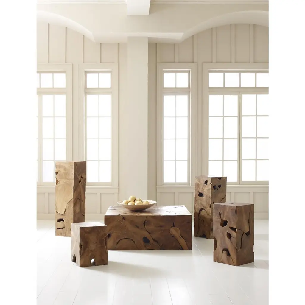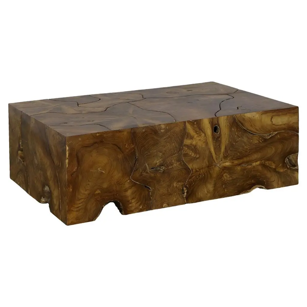 Zaria Rustic Natural Teak Slice Rectangular Block Coffee Table
