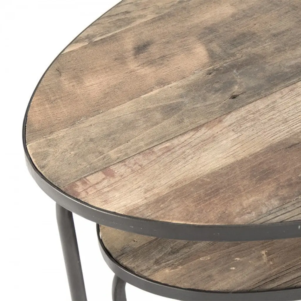 Zentique Alberta Oval Coffee Table Weathered Elm, Distressed Grey Metal