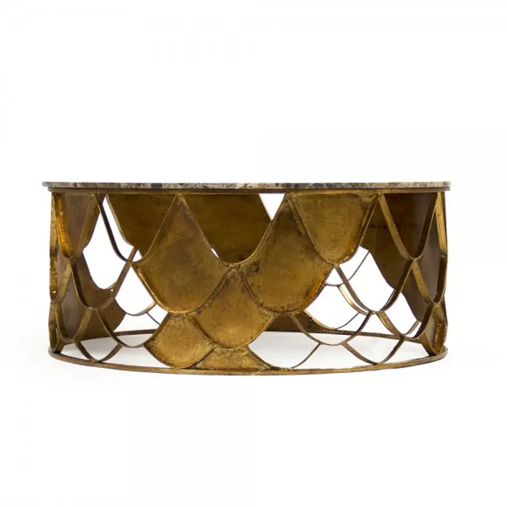 Zentique Casey Coffee Table (Set Of 2) Brown Top, Gold Leaf Base