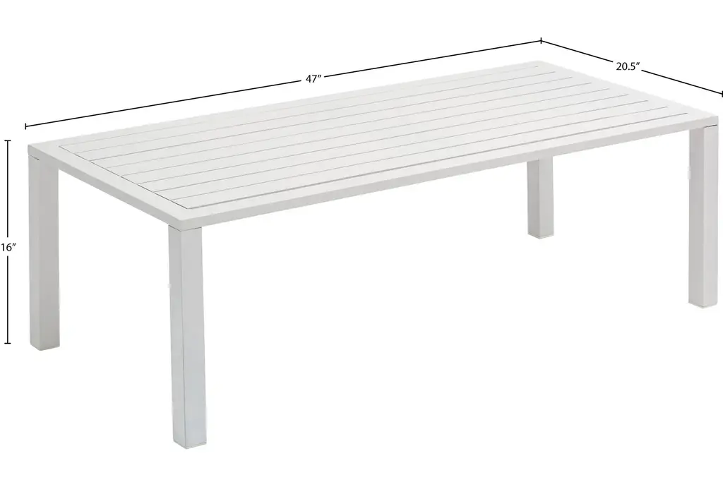 The Zephyr Outdoor 47" Metal Patio Coffee Table is a perfect addition to your outdoor space. Its modern design and durable aluminum construction make it a reliable choice for any patio or deck. With its weather-resistant feature, this large rectangular table ensures long-lasting use in various weather conditions.