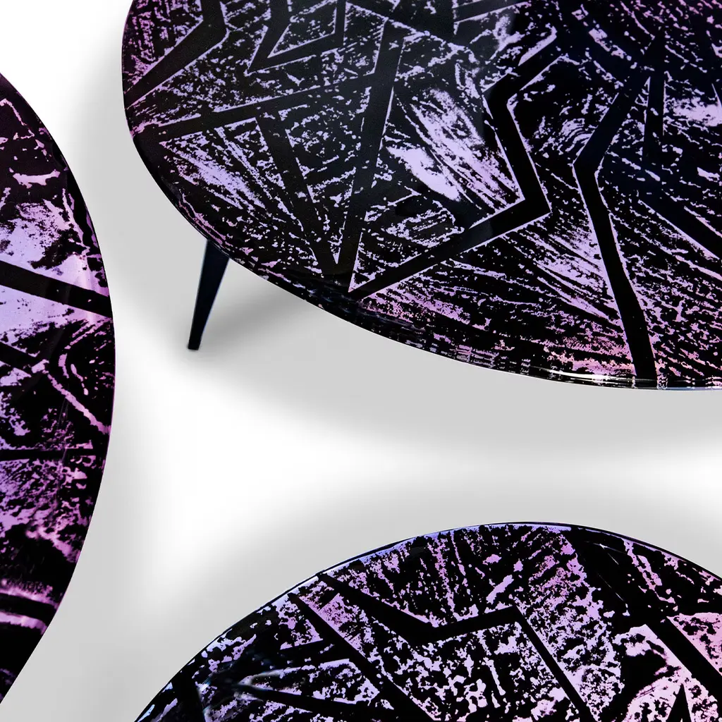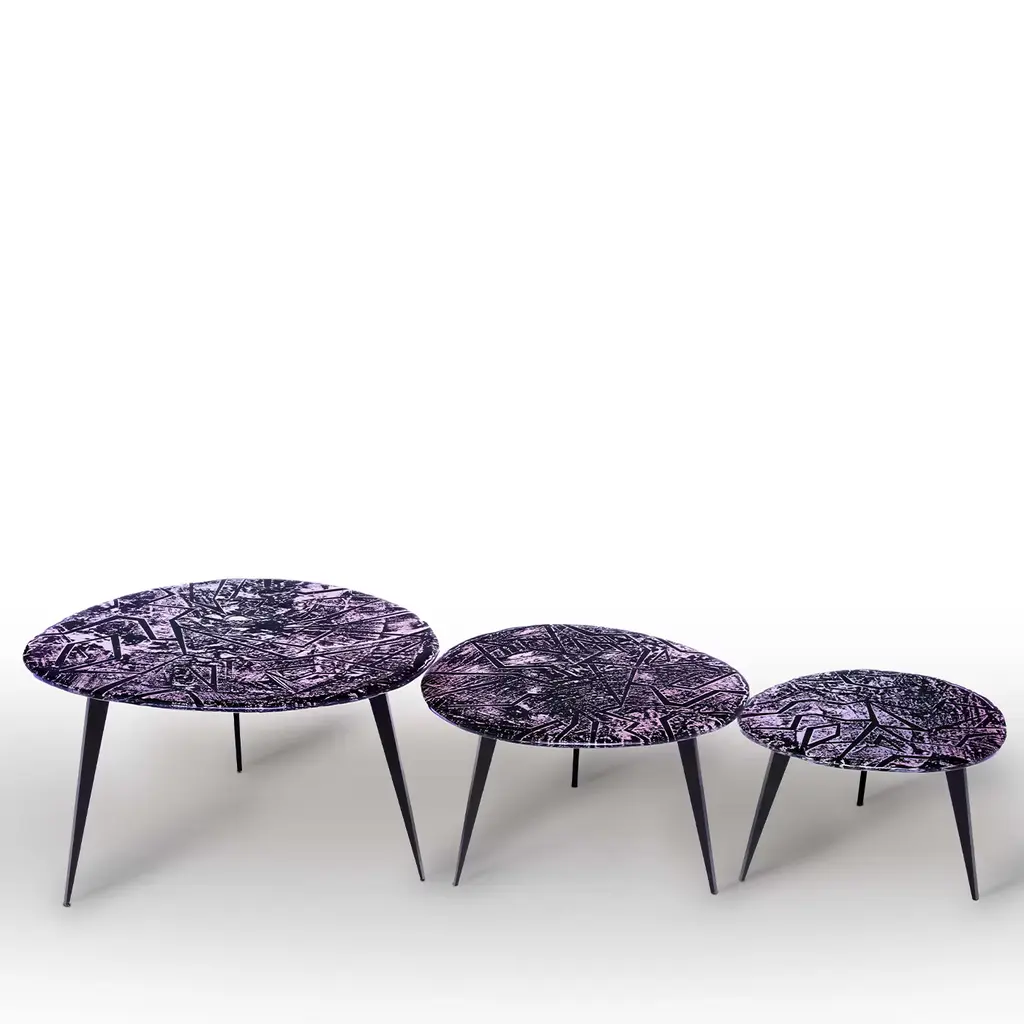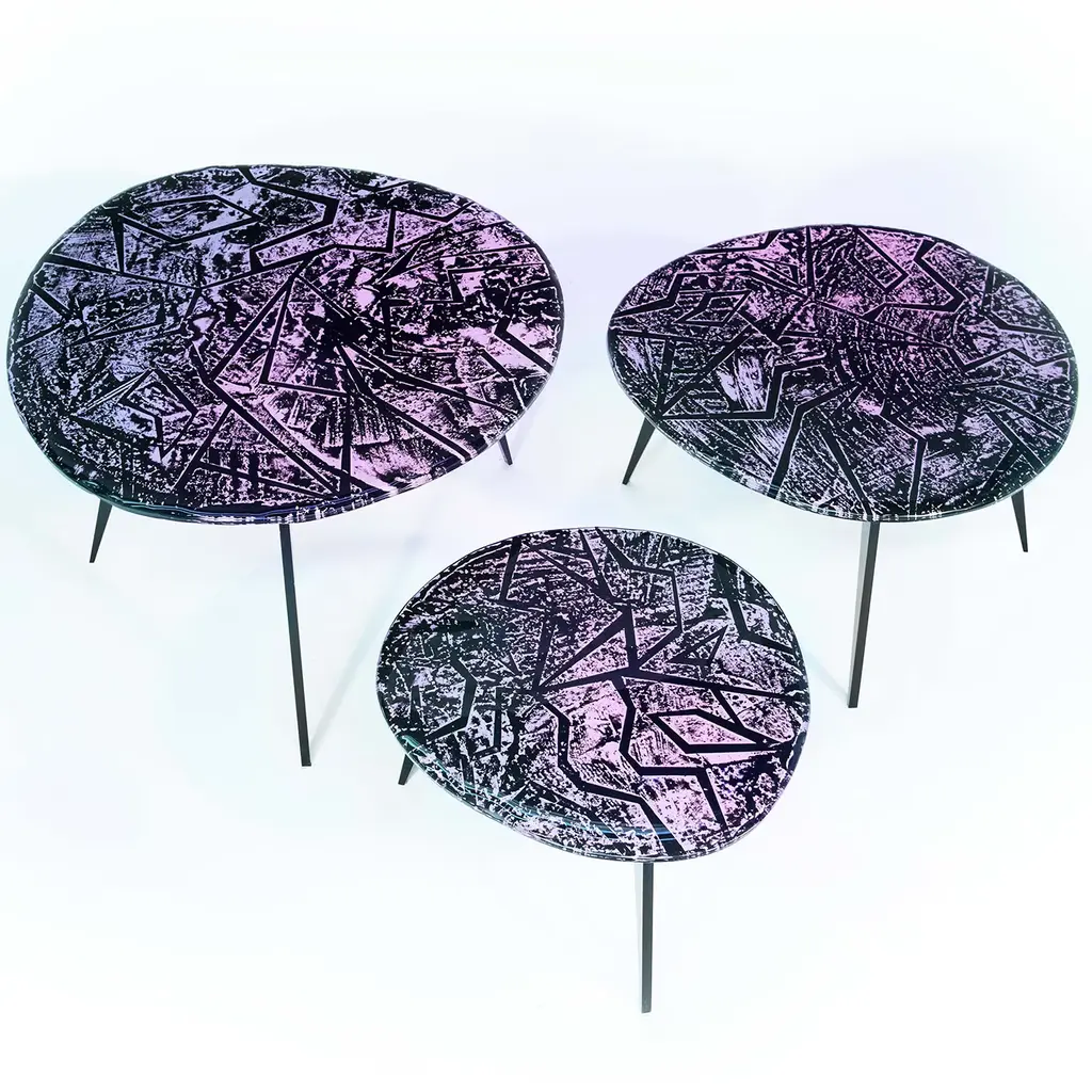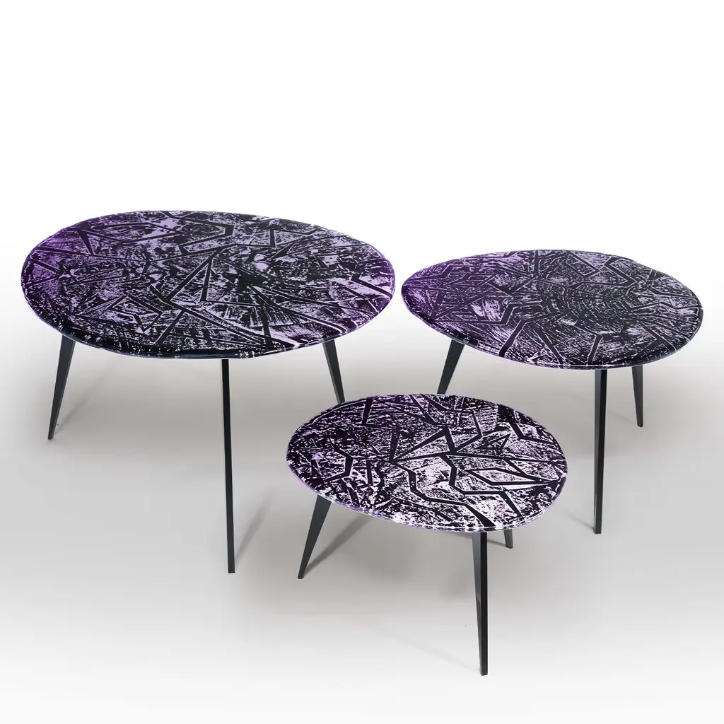 Zig-Zag Set Of Three Amethyst Crystal Coffee Tables