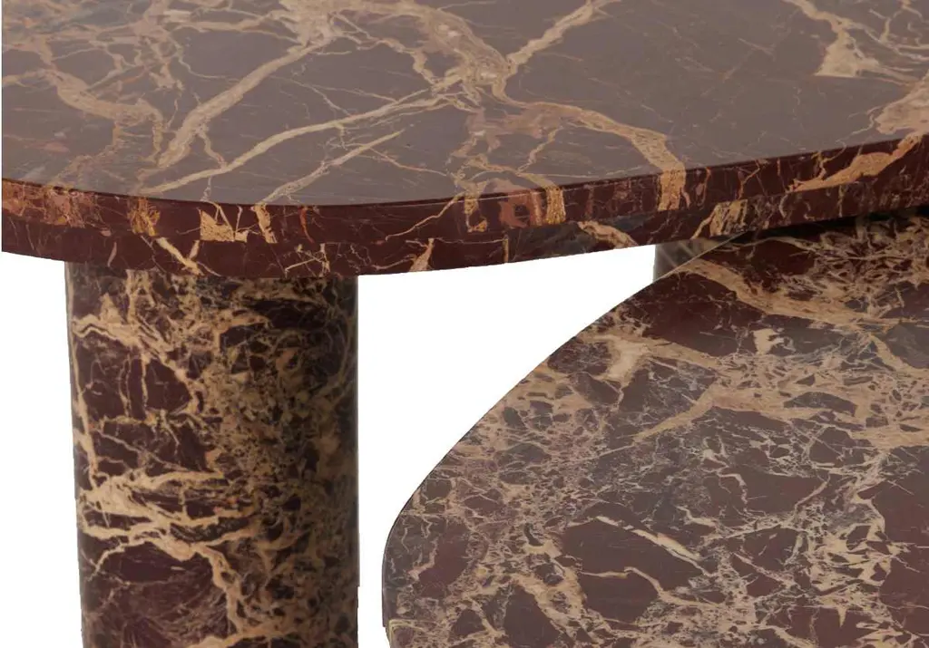 Crafted from solid marble, this cocktail table lends incredible visual texture with its natural merlot coloring and veining. Its nesting design adds dimension and space, styling well into a variety of living rooms.