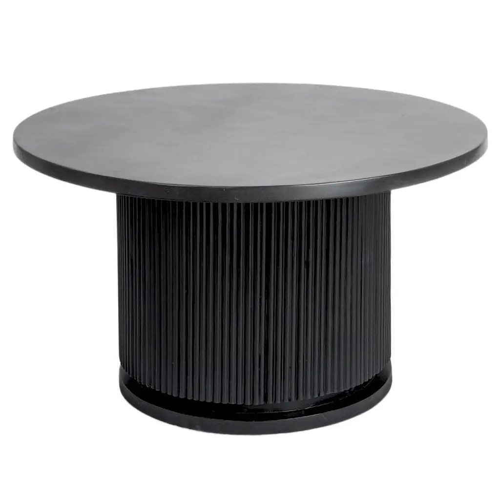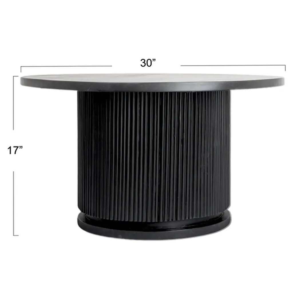 Zoey Modern Classic Black Mango Wood Ribbed Round Coffee Table