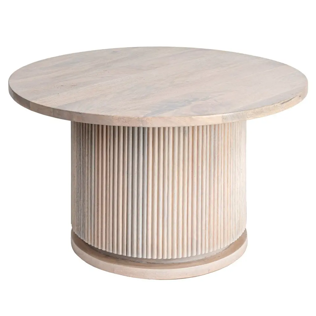 Zoey Modern Classic Bleached Mango Wood Ribbed Round Coffee Table