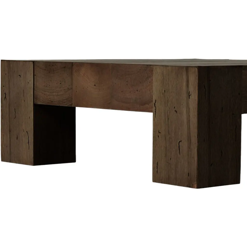 The Zuri Small Square Coffee Table is a masterful blend of design and functionality, crafted from thick-cut oak veneer. This low-profile, large-scale coffee table is designed with chunky squared legs and showcases exquisite dovetail joinery detailing. Its rustic finish adds a touch of timeless elegance, making it a perfect centerpiece for any living space.