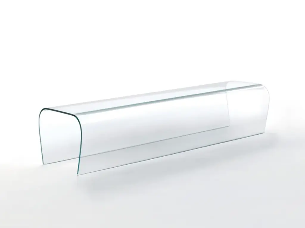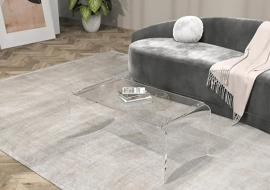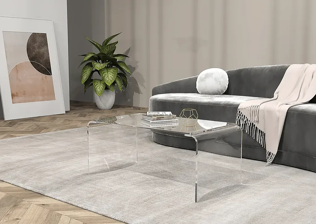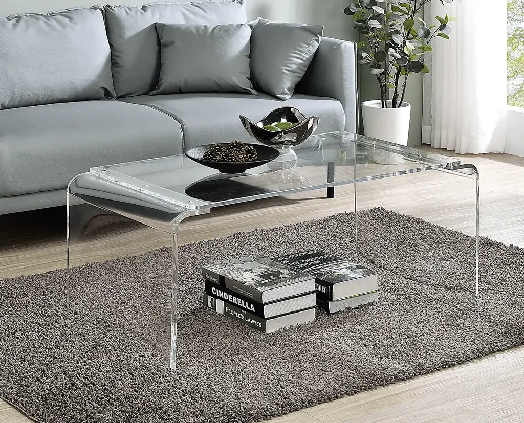 This Zyma clear cocktail table features a waterfall edge design with curved frame that is a beautiful addition to any home or office. Clean lines and a simple U-shape make it a versatile piece that fits with practically any decor. Customer assembly is required.
