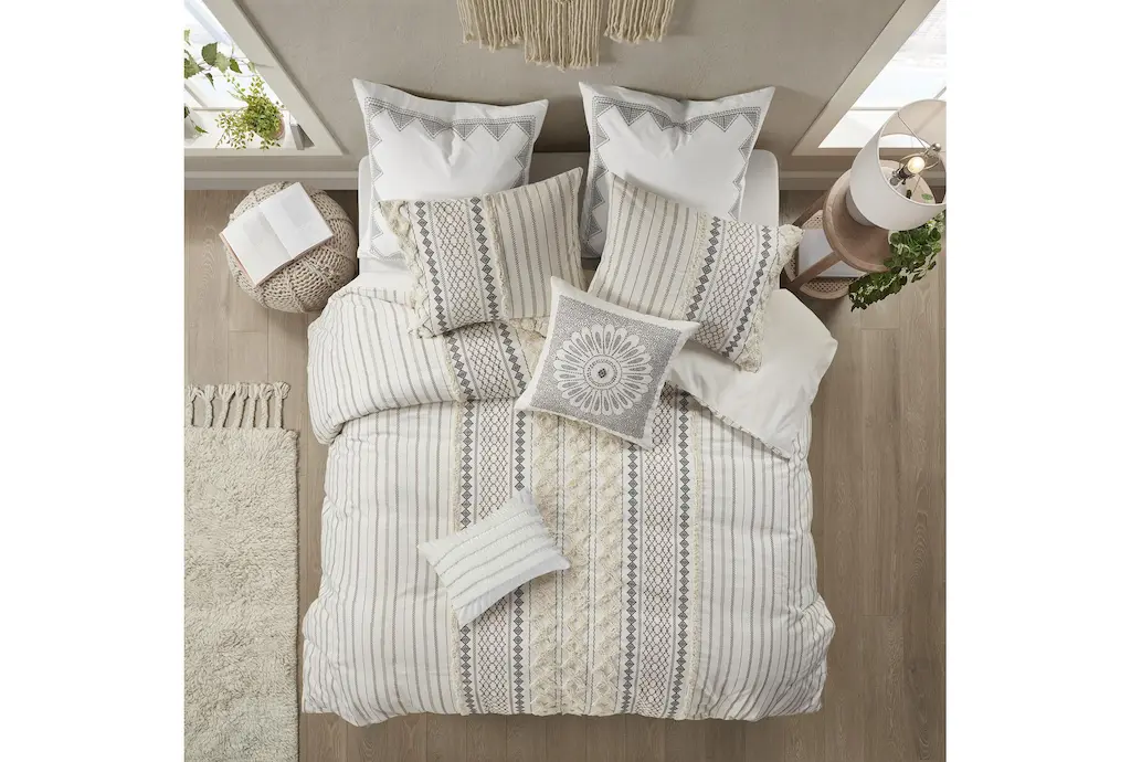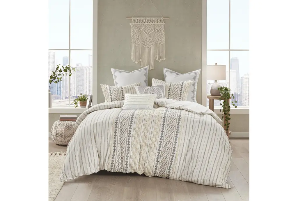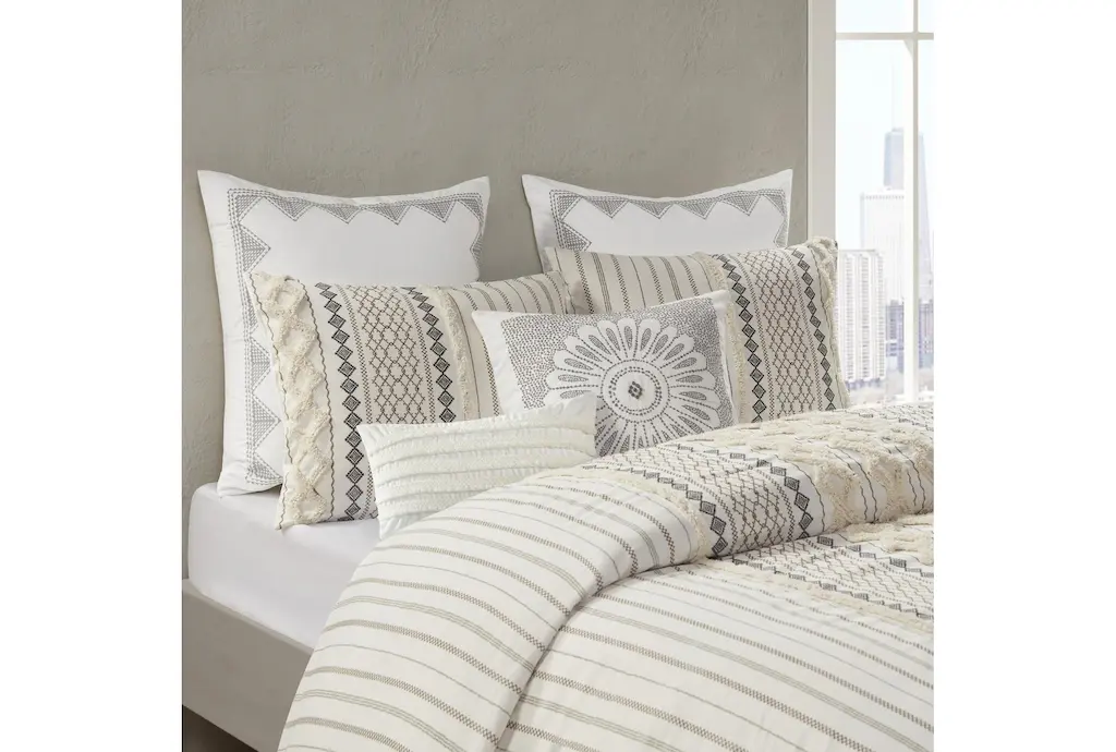 Full/queen Comforter-3 Piece Set Boho Chic Cream Cotton | Geometric