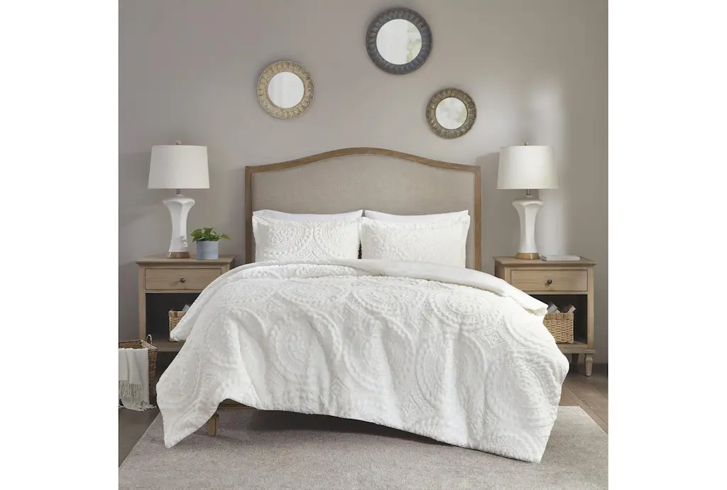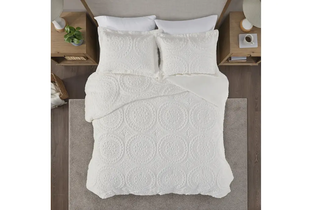 Full/queen Comforter-3 Piece Set Plush Medallion Cream Polyester