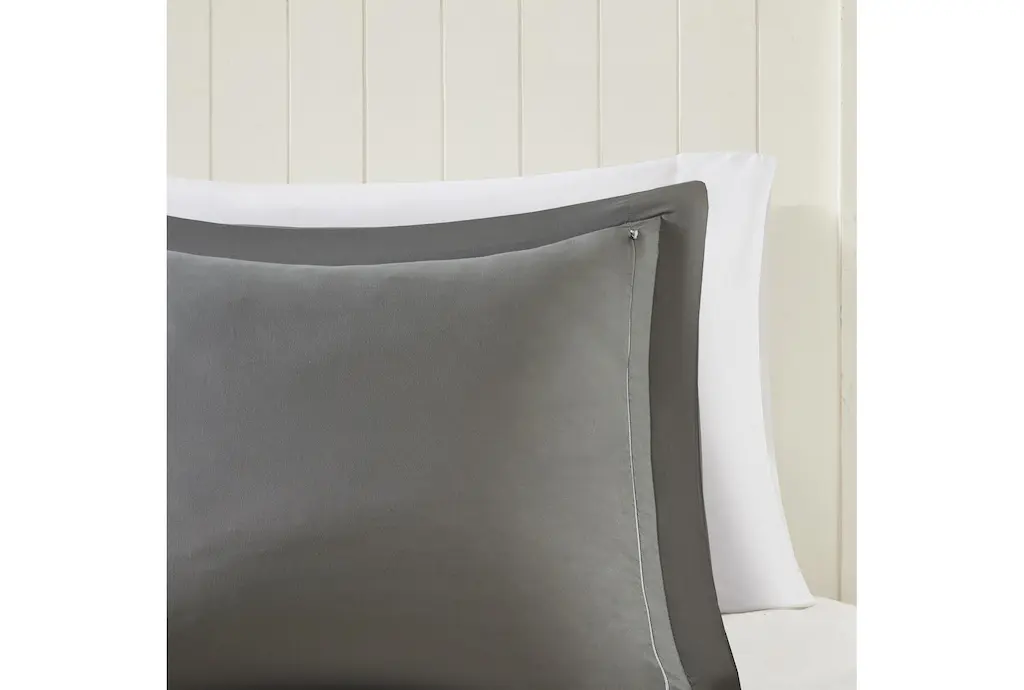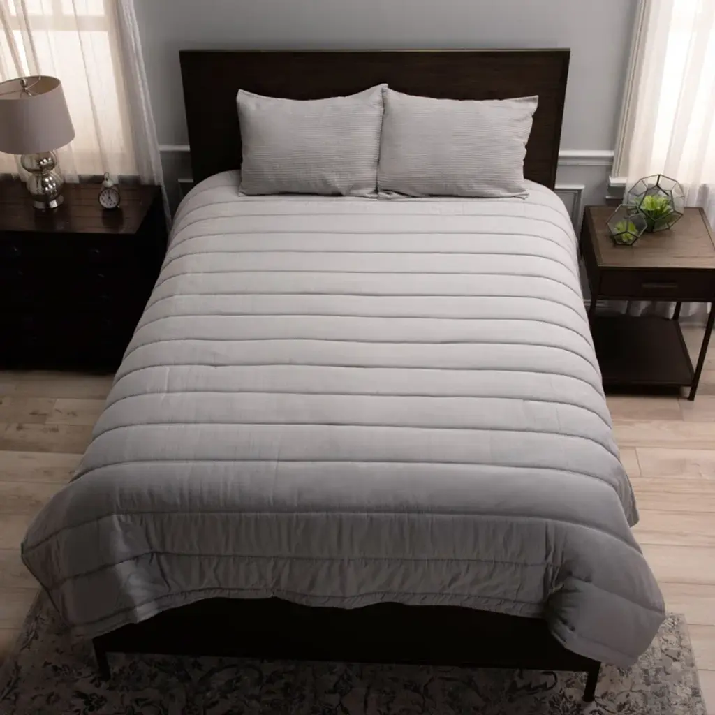 Full/queen Comforter-3 Piece Set Reversible Diamond Quilting Grey Polyester | Quilted
