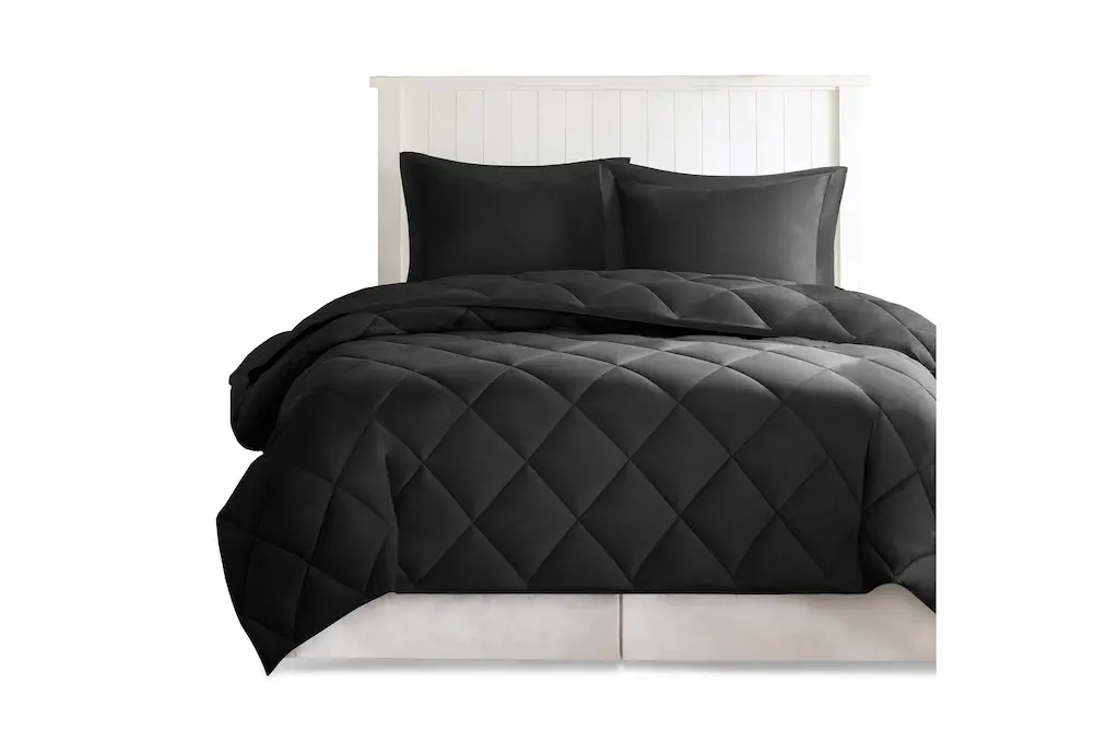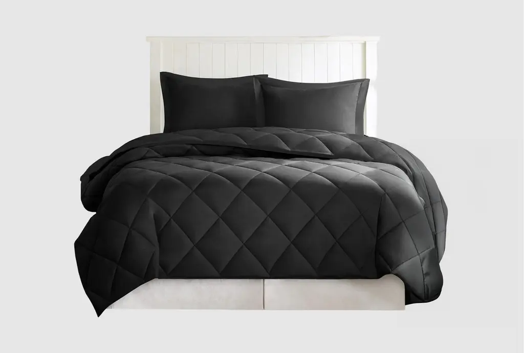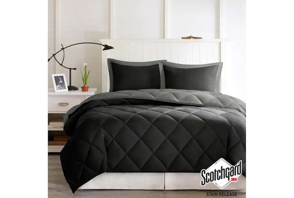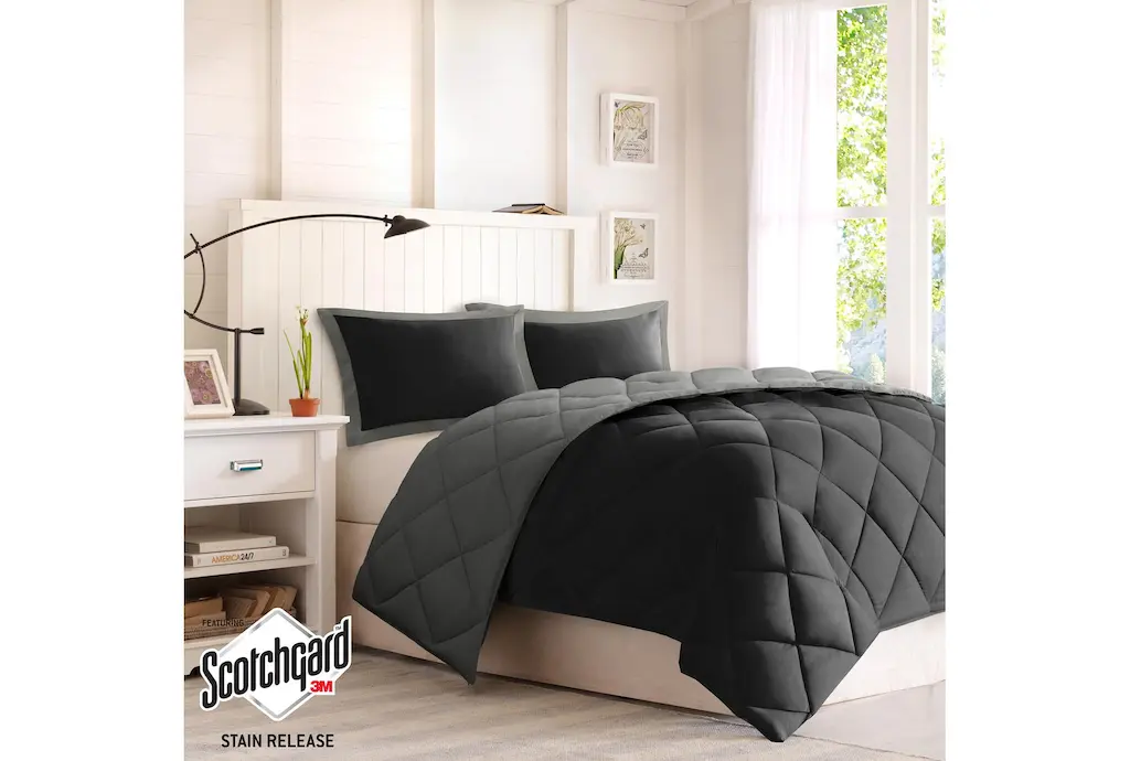 Transform your bedroom with the Full/Queen Comforter 3-Piece Set in Reversible Diamond Quilting Grey. This contemporary comforter is designed in a chic blush color and made from soft brushed microfiber polyester, ensuring a cozy and comfortable night's sleep. The reversible design provides versatility and style, making it perfect for any dorm room or bedroom update.