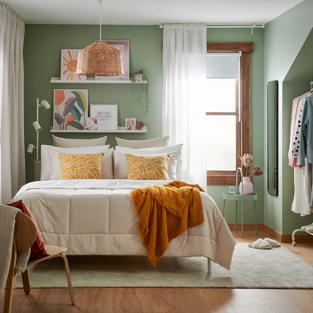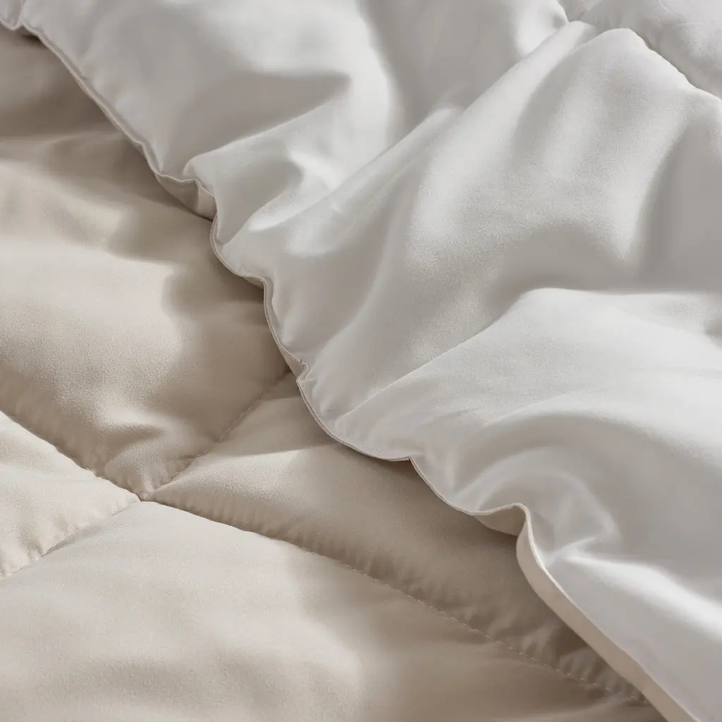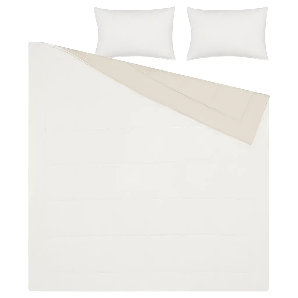 HEDFRYLE Comforter set - white/beige Full/Queen. Both the comforter and pillow sham have sides in different colors – choose depending on your mood and turn them over as often as you like. Easy-care since the comforter can be machine washed and dries quickly. 180 thread count. 6-oz filling density.