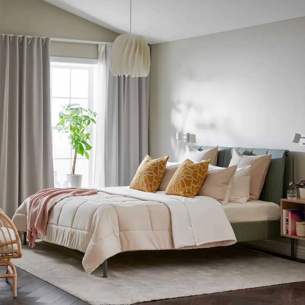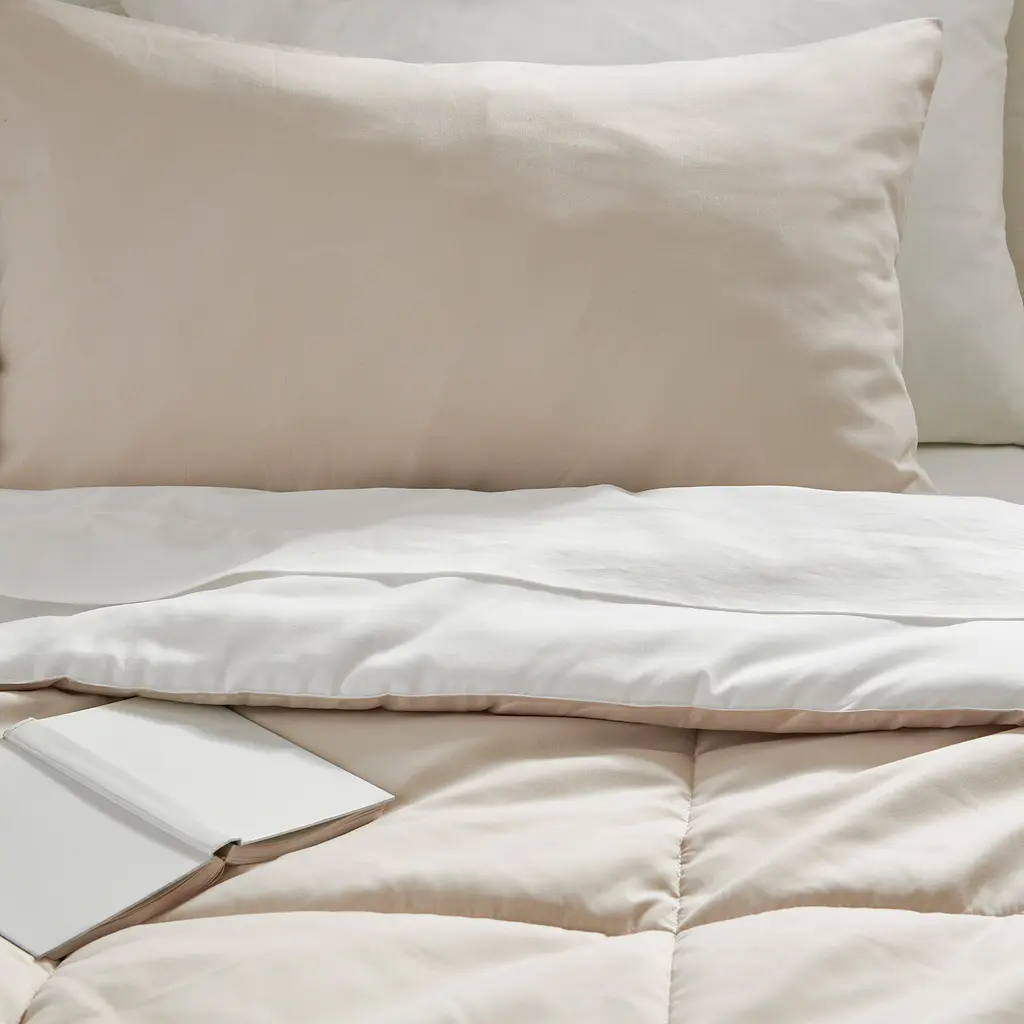 HEDFRYLE Comforter set - white/beige King. Both the comforter and pillow sham have sides in different colors – choose depending on your mood and turn them over as often as you like. Easy-care since the comforter can be machine washed and dries quickly. 180 thread count. Machine washable at 104°F.