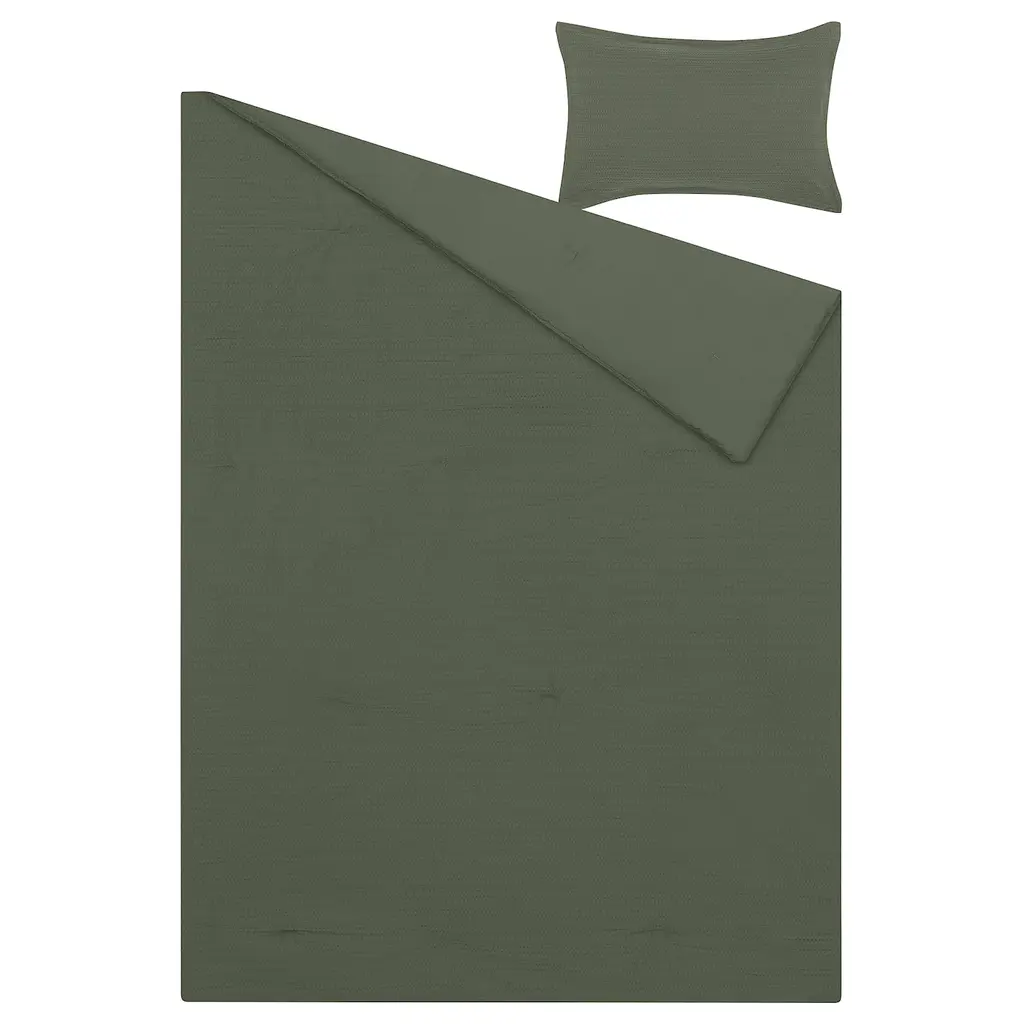 LUKTVICKER Comforter set - green Twin/Twin X-long. The waffle structure on the topside of the comforter creates a 3D-effect that gives the comforter a beautiful texture. 100% cotton fabric that breathes and feels wonderfully soft against your skin. 186 thread count. Machine washable at 104°F.
