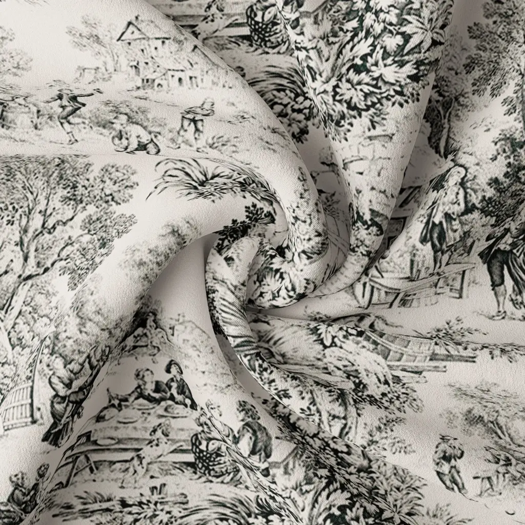 Maison Toile is a timeless French-inspired toile design. Although toile has been around since the 18th century, the two-toned pastoral classic motif can hold its place in modern decor.