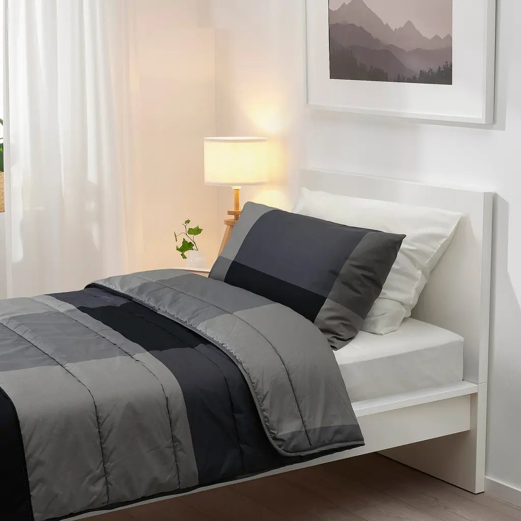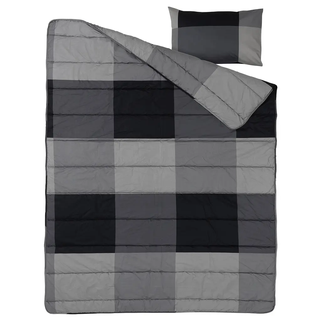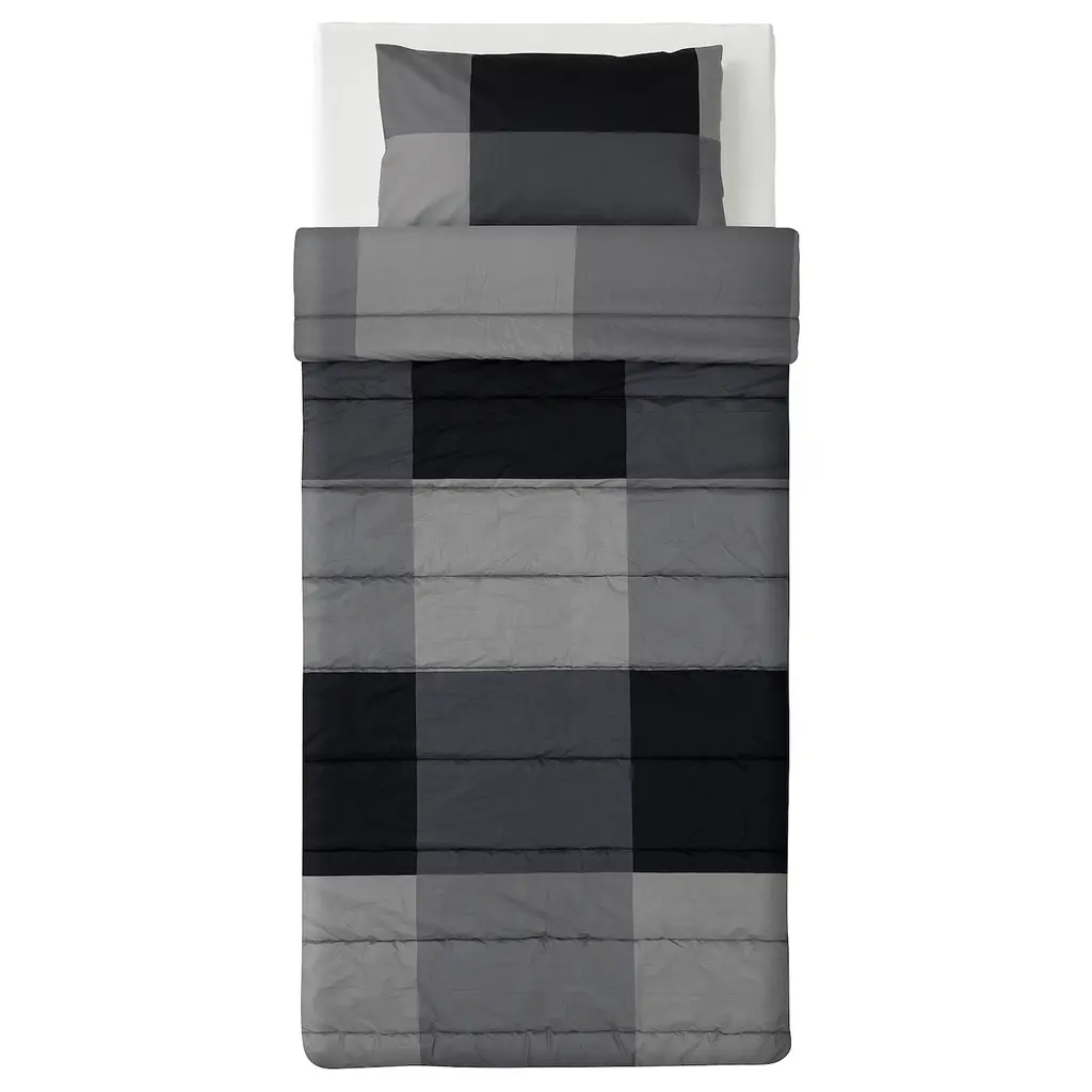 MYRGRÅMAL Comforter and pillowcase - black Twin. A good choice if you are allergic to dust mites since the quilt is machine-washable at 140°F (Warm), a temperature that kills dust mites. Made of 100% cotton - a natural and durable material that becomes softer with every wash. 176 thread count.