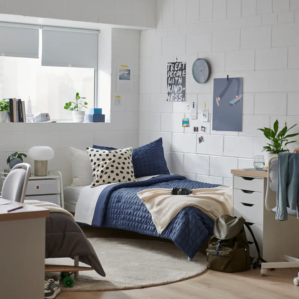 RÄVSTARR Comforter set - dark blue Twin/Twin X-long. The checkered seersucker structure on the topside of the comforter gives your bed an inviting expression. The underside of the comforter is made of brushed polyester that feels super soft against your skin. 186 thread count. 8-oz filling density.
