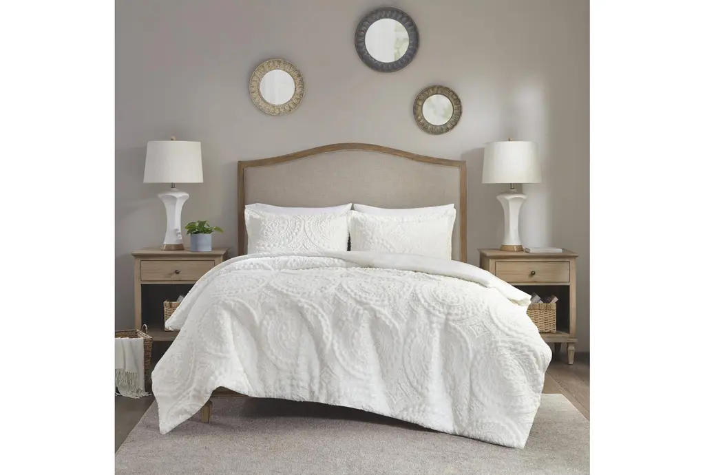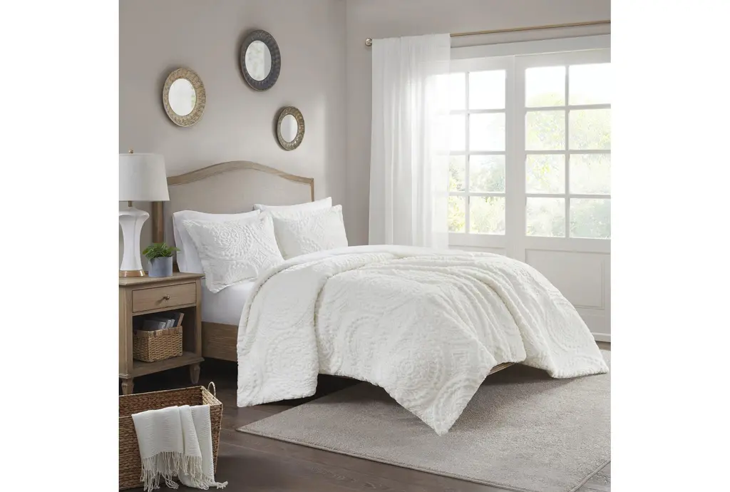 Transform your bedroom with the Twin Comforter 2 Piece Set in Plush Medallion Cream Polyester. This contemporary set features a soft, neutral grey color that complements any decor. Designed for dorm rooms, this rectangle-shaped comforter is machine washable, making it easy to keep clean.