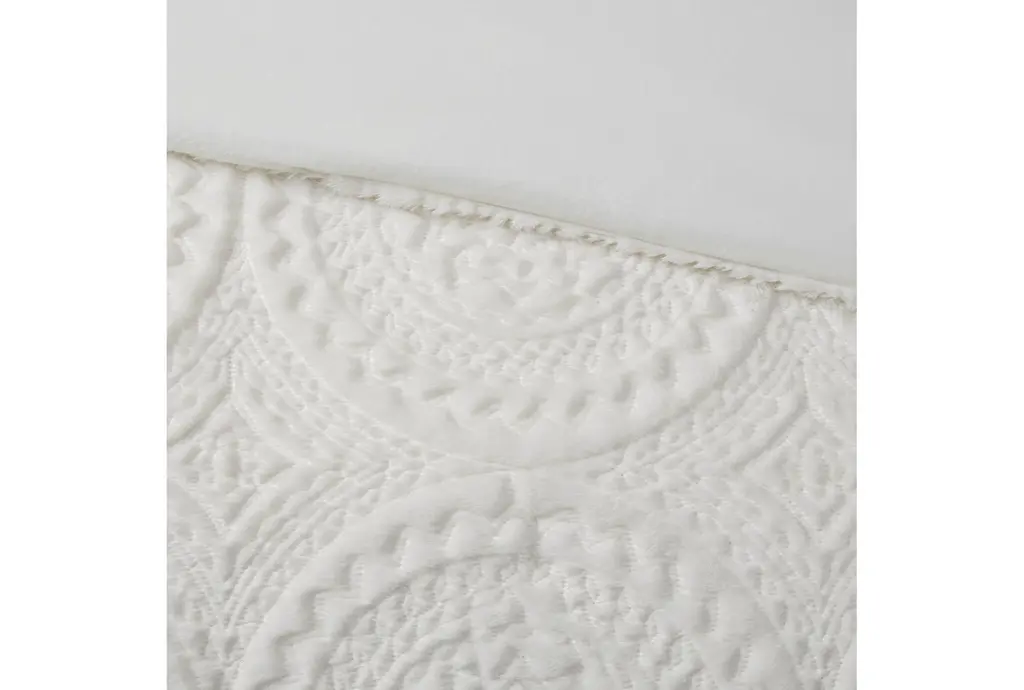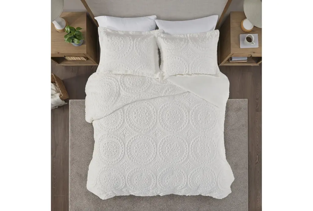 Twin Comforter | 2 Piece Set | Plush Medallion Cream Polyester | Rectangle | Machine Washable