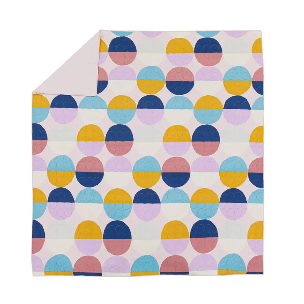 The Makers Collective brand is a curated exhibition of makers that celebrate a fresh voice for the home and believes in bringing quality design and craftsmanship to every home lifestyle. Add a modern and refreshing touch to your bedroom space with the Circles quilt! A statement making look from Ampersand Design Studio that is sure to brighten any bedroom. Color-blocked circles create vibrancy on the front of the quilt, which reverses to a solid soft pink back. 100% cotton construction and pre-washing make it a warm and cozy piece to tuck into at night.