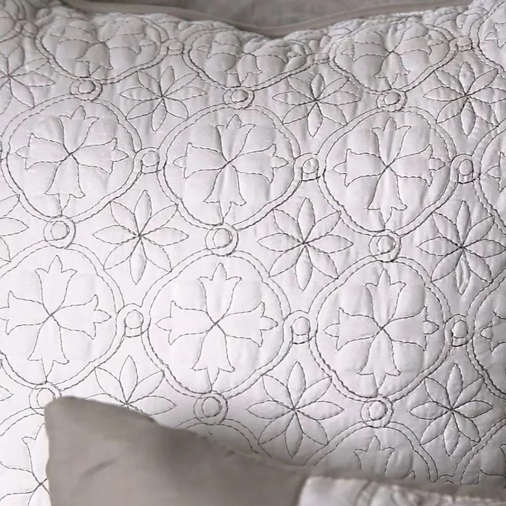 Contemporary elegance combined with a soothing muted gray palette perfectly describes the Winthrop bedding ensemble from Riverbrook Home. The woven jacquard style fabric features a charming medallion motif and sets the tone for all of the coordinating pillows and shams. Everything you'll need to create your dream bedroom is included in this beautiful bedding collection. Machine washable for your convenience; follow care instructions on each piece for best results.