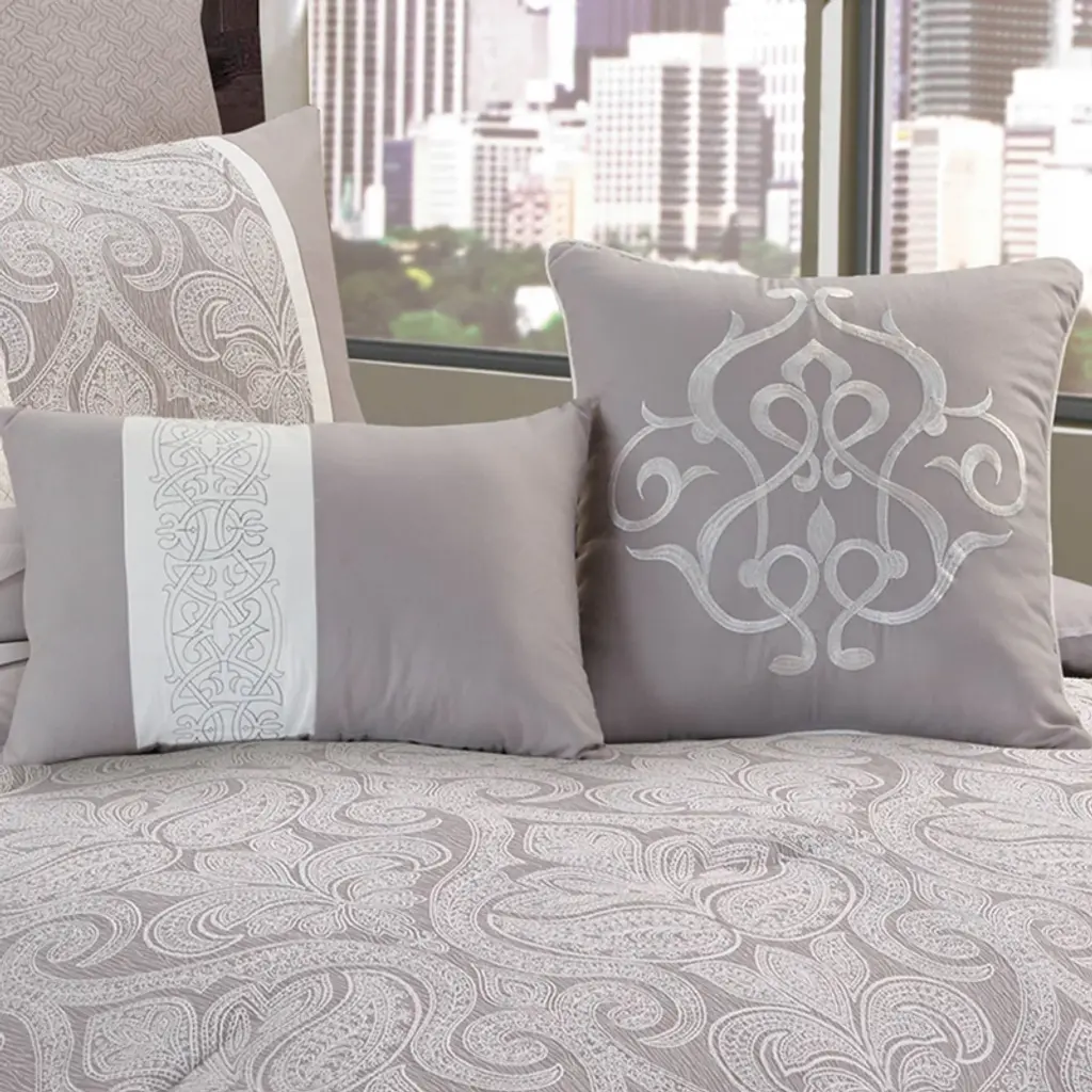 9Pc Queen Winthrop Comforter Set Gray & Ivory - Riverbrook Home: Polyester Jacquard, Machine Washable, 170 Thread Count