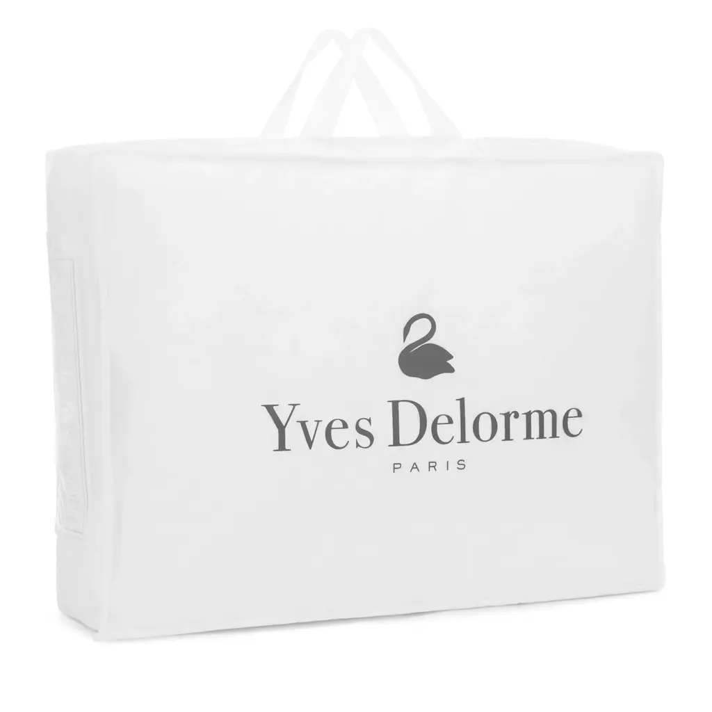 Yves Delorme used a batiste weave for continuous air circulation and light-yet-resilient European goose down--box-stitched in place for even distribution--to create this All Season comforter, delivering warmth without weight.