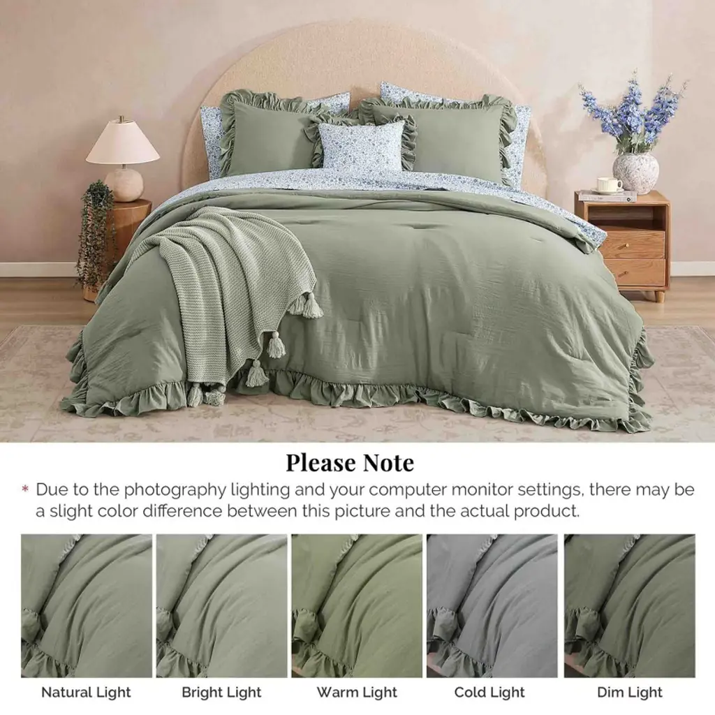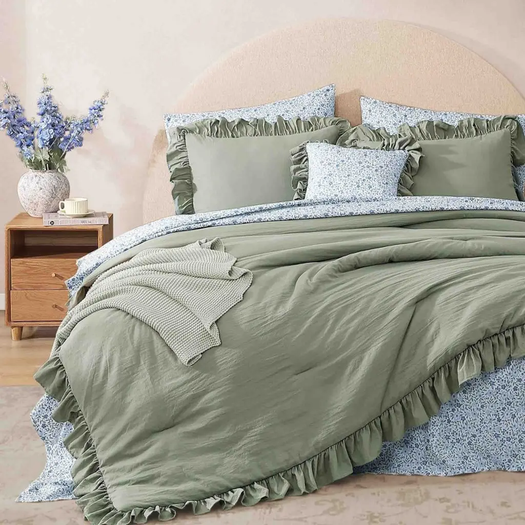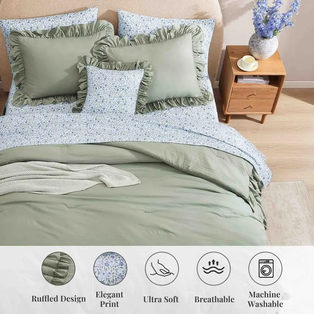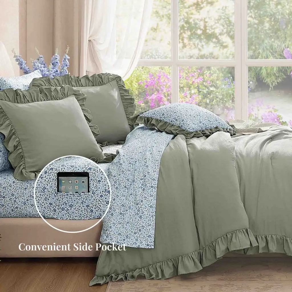 This comforter set brings timeless elegance to your bedroom with delicate ruffled edges and a soft floral print that adds a gentle, romantic touch to your space. Designed to elevate your d¨ecor, it creates a cozy retreat you'll look forward to every night.