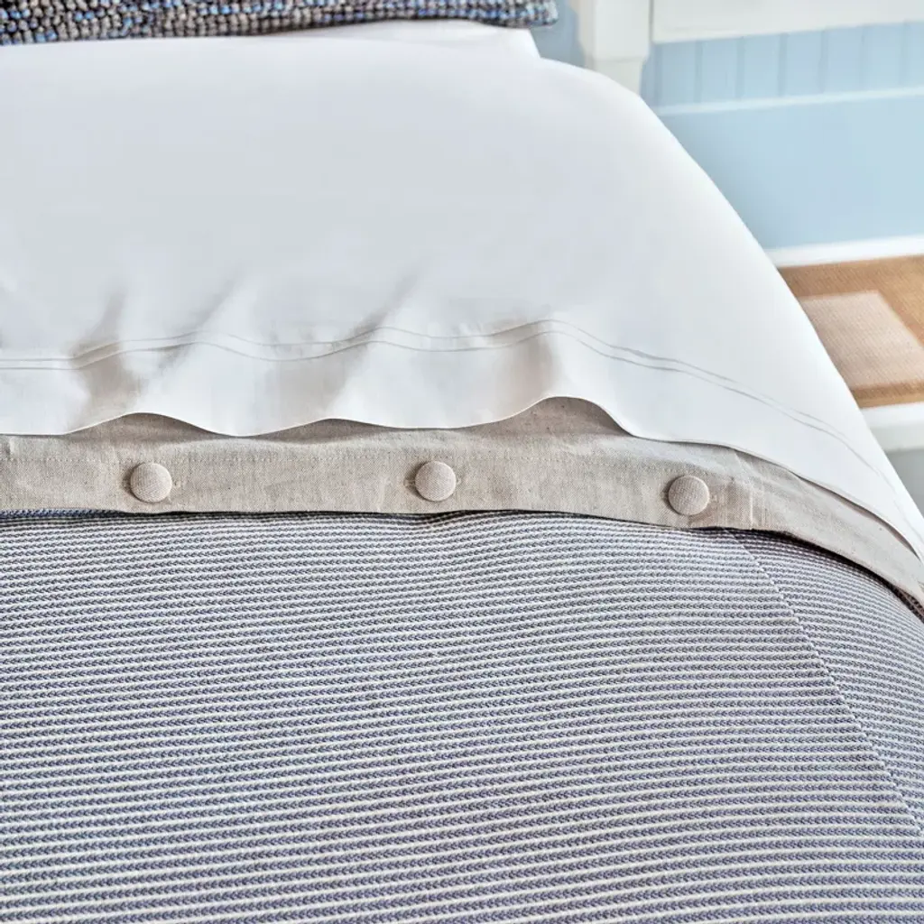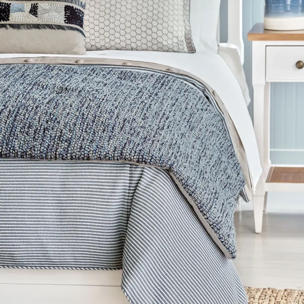 Unwind with this fresh take on lakeside living. Beau is breezy and blue-encompassing every shade of America's favorite color while embracing layers of distinctive texture. Build a backdrop with chunky woven Euro shams and a herringbone pinstripe duvet cover, then accessorize with mini brush fringes, eclectic borders, and honeycomb embroidery. Beau is cool and refreshing as a day by the shore.