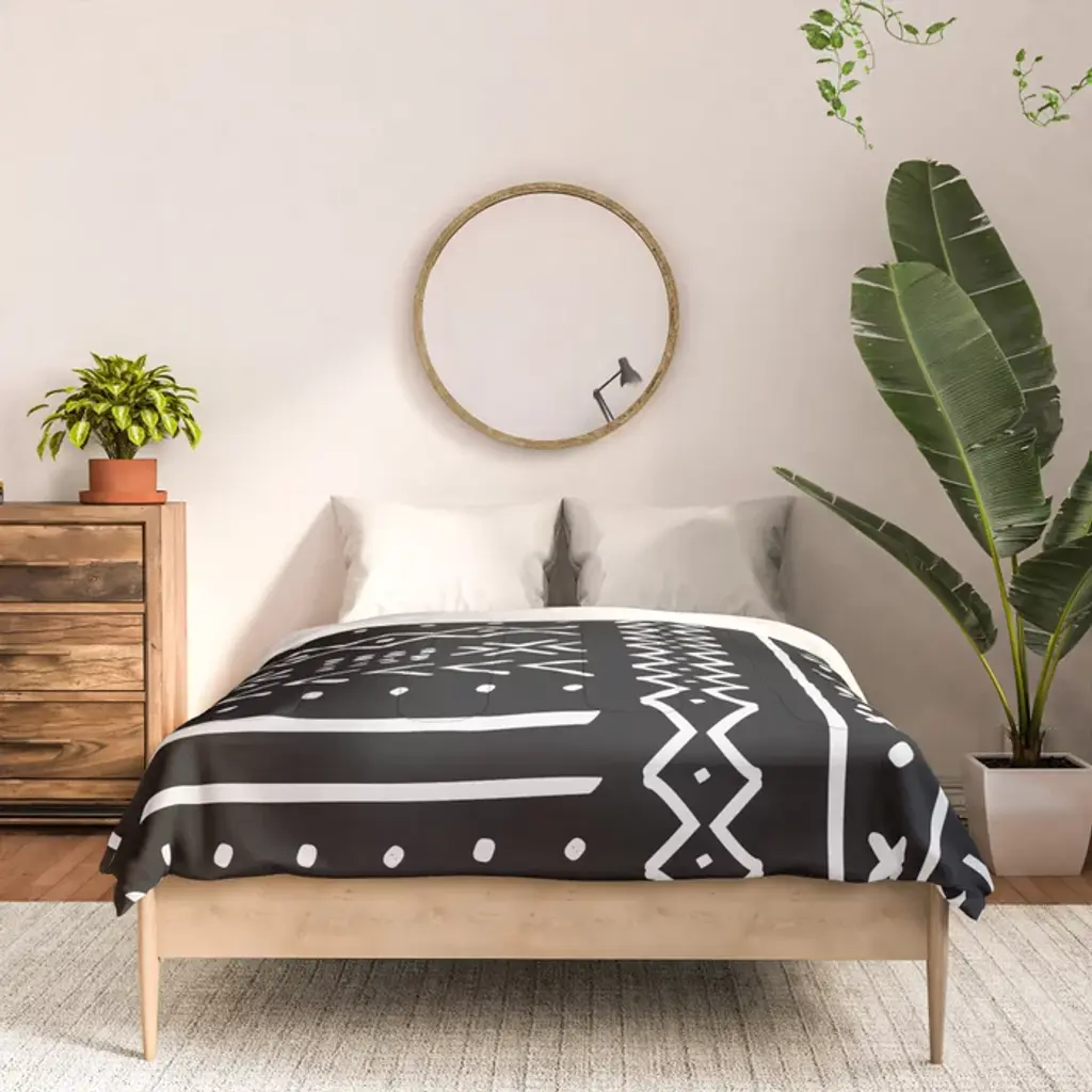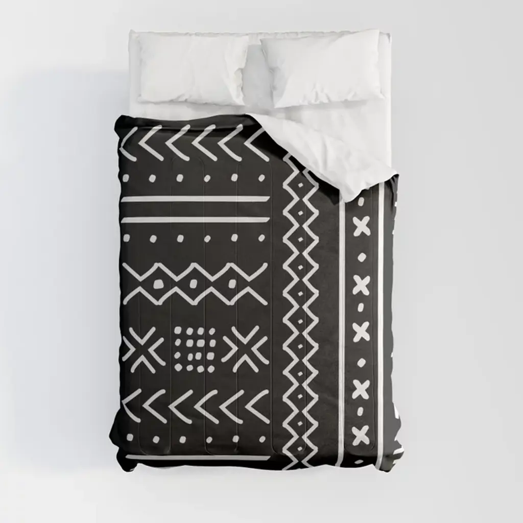 Black Hand Drawn Mudcloth Comforter