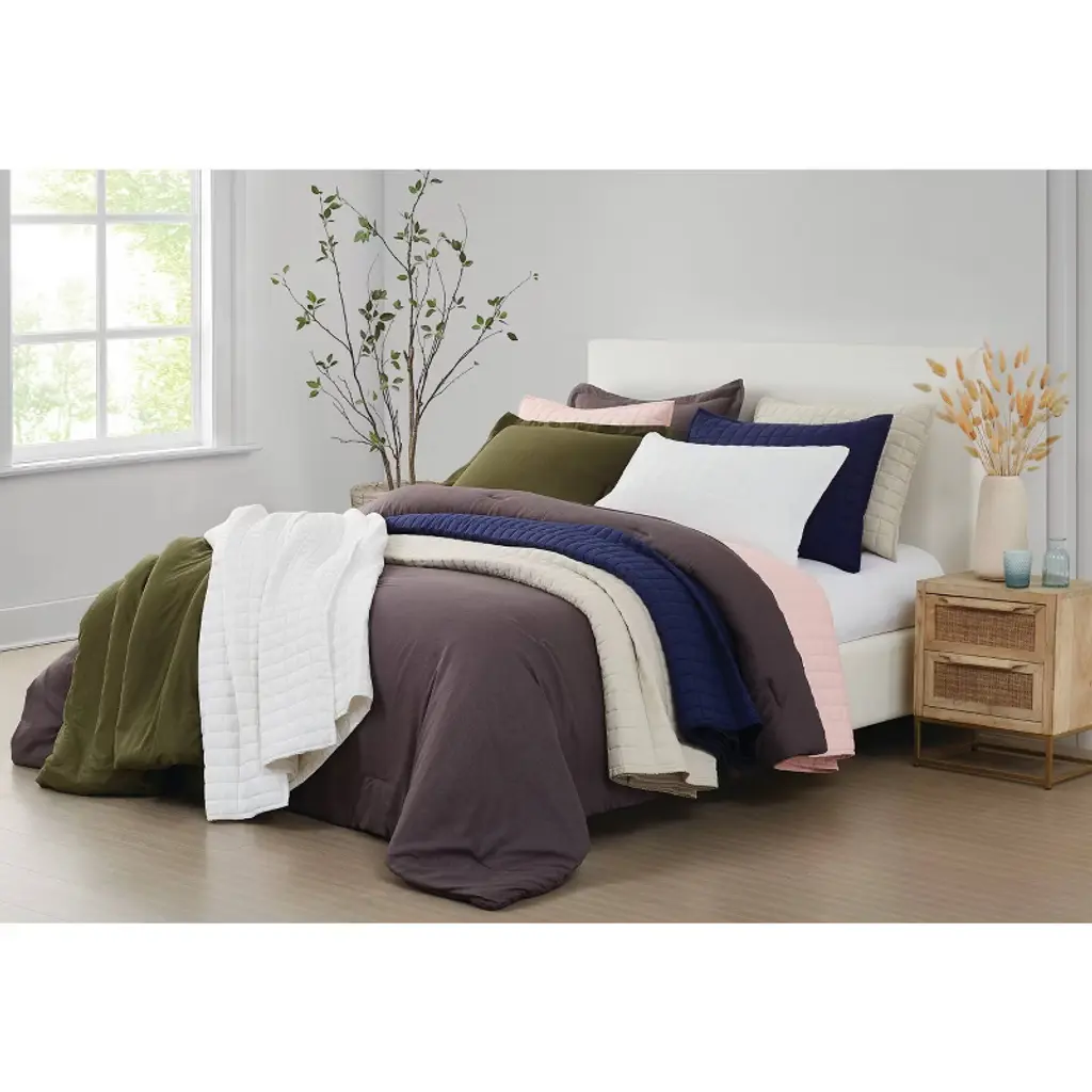 Linen is the natural moisture wicking fiber and this 100% linen collection covers natural and sustainable fiber that is comfortable and responsible. Includes: one comforter 104 inches wide by 92 inches long and two king shams 20 inches high by 36 inches wide. Face and reverse of comforter and shams are made of 100% Linen woven fabric. Comforter is filled with 100% polyester down alternative fiber filling.