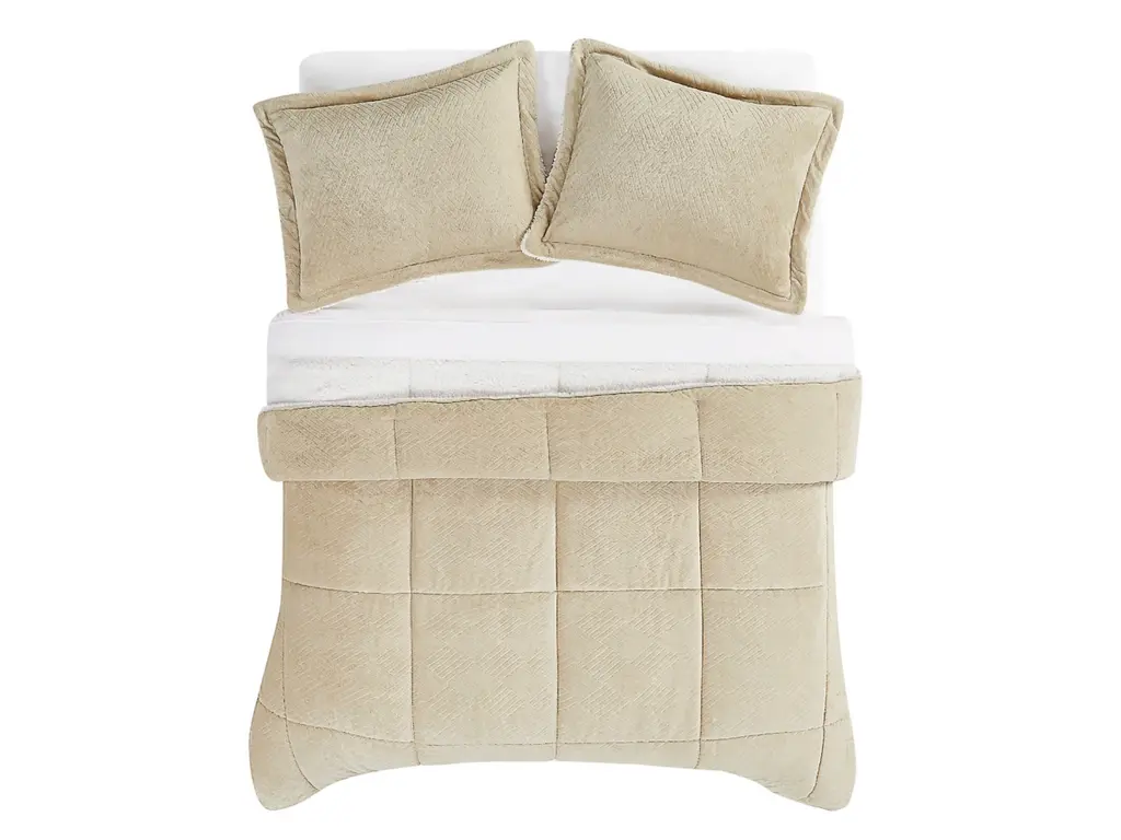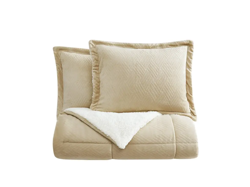 Designed for unparalleled softness and available in a variety of fashionable colors. The face fabric, boasting 200 GSM, showcases a textured pattern with a sophisticated crossing design that adds depth to your bed. Enhanced with a large-scale box stitch, this comforter combines luxurious texture with durability, ensuring it stands up to daily use. The reverse side features a solid off-white color in cozy sherpa fleece, adding warmth and comfort. Certified to meet OEKO-TEX Standard 100 for safety and sustainability, our comforter set offers peace of mind along with exceptional quality. Embodying a rich heritage, Cannon is an iconic American brand cherished by consumers since 1887. Renowned for high-quality craftsmanship, effortless maintenance, and timeless style, Cannon continues to deliver superior products at an accessible price point.