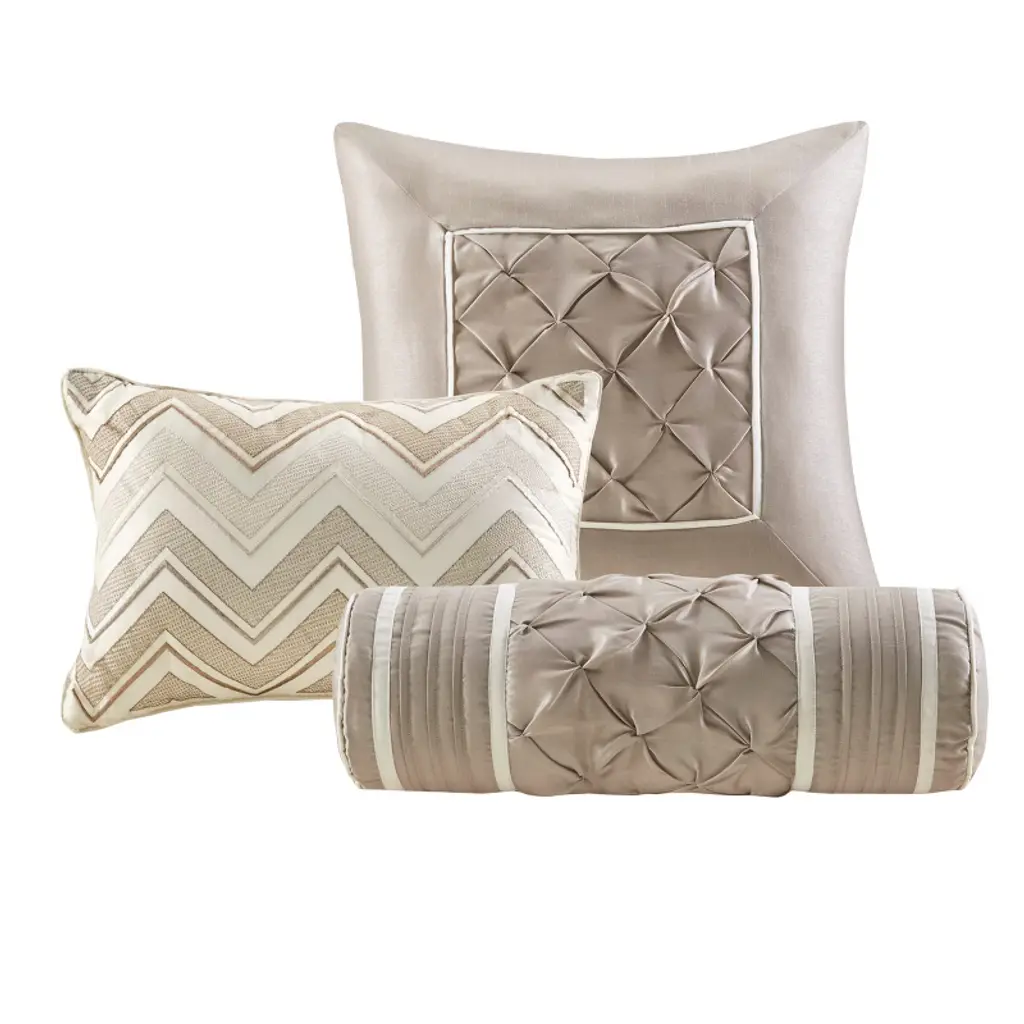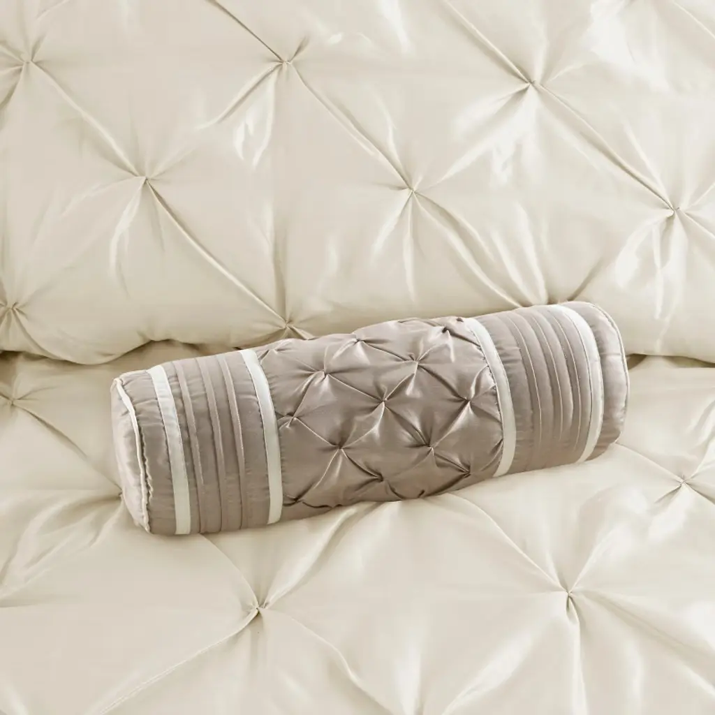 Cesicia 7 Piece Beige Tufted Comforter Set, Queen Size
