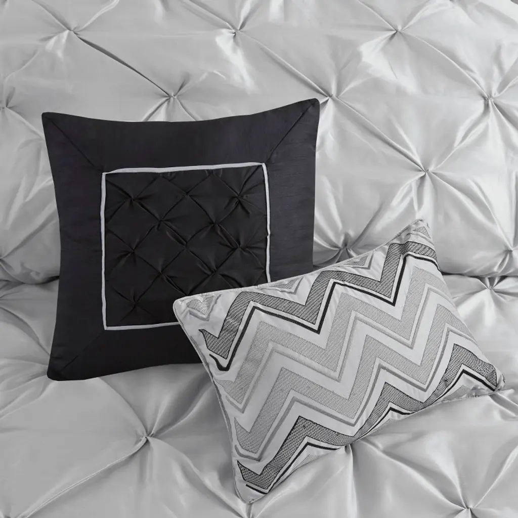 Cesicia 7 Piece Gray Tufted Comforter Set, Queen Size
