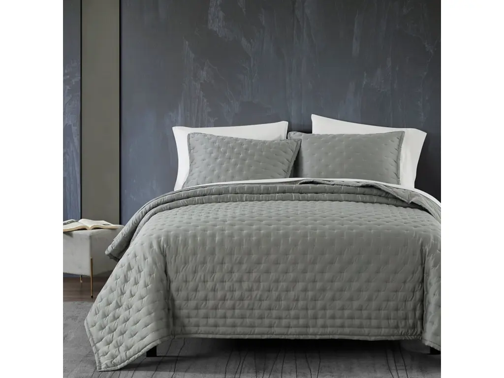 Its grey coloring makes this set create a statement in your bedroom. The collection is made from 100% polyester polyoni and has pieced fabric sewn together providing added dimension. It is finished with a smooth edge of fabric that creates a beautiful border around this comforter.