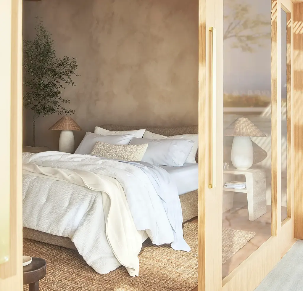 Inspired by our bestselling bed blanket, this layer offers a casual style and cloud-like softness unlike any other comforter. It's crafted with our beloved Dream fabric, uniquely designed with 4 lightweight layers of ultra-fine organic cotton and embroidered accents for added dimension. Backed by our uniquely soft Signature fabric and finished with recycled polyester fill, this laid-back piece transforms any bed with its distinct texture, subtle tonal gradient, and an exceptionally soft touch. The Feel Cloud-like softness & texture with a gentle stretch The Look Casual yet refined with natural dimension