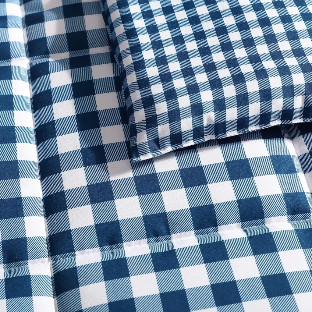 Introducing the Eddie Bauer Kids Preston Check Comforter Bonus Set, a perfect blend of adventure and comfort for your child's bedroom! Available in blue or pink with white gingham check pattern, this set adds a timeless yet playful touch to any space. The set includes a cozy comforter, two shams (one twin size), and a square pillow adorned with the iconic Eddie Bauer mountain logo, inspiring dreams of camping under the stars or exploring the great outdoors. Crafted from 100% soft microfiber, this bedding set is not only durable but also incredibly comfortable. Set is machine washable for easy care and it meets the highest kids safety standards with CPSIA testing. Additionally, the ensemble is Oeko-tex certified, ensuring it's free from harmful substances, making it gentle and safe for your child's delicate skin. Adventure and comfort come together seamlessly with the preston check bedding set!
