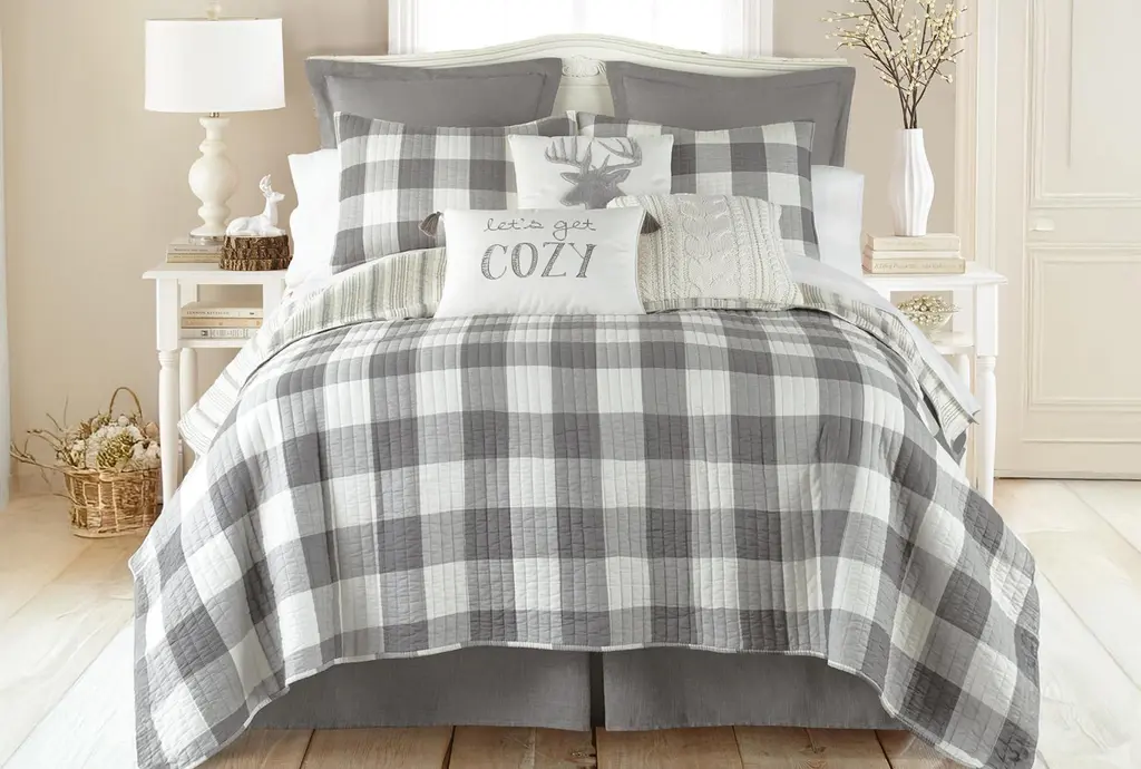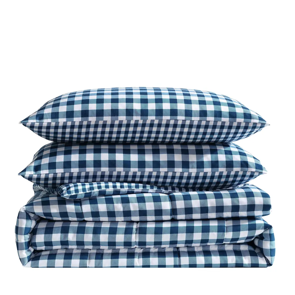 Eddie Bauer Preston Check Reversible Comforter Bonus Set - Blue - Twin