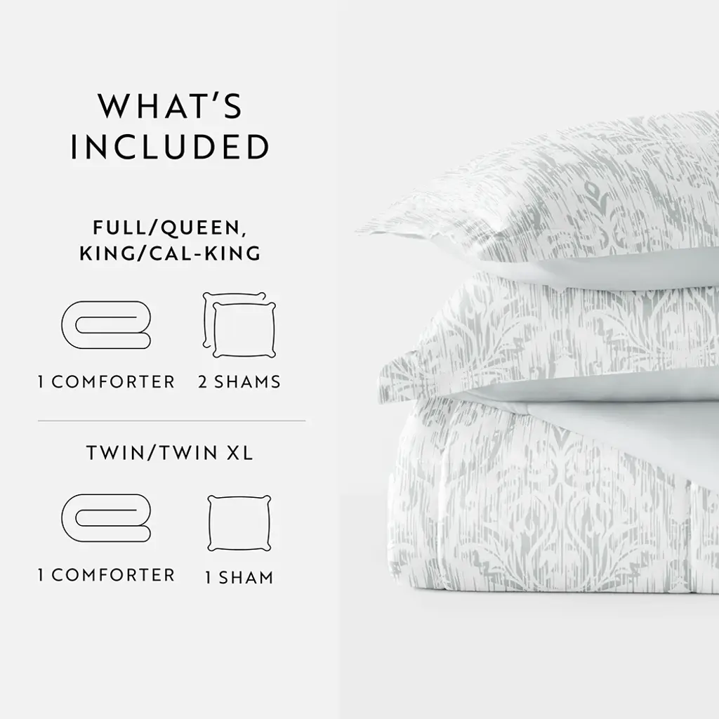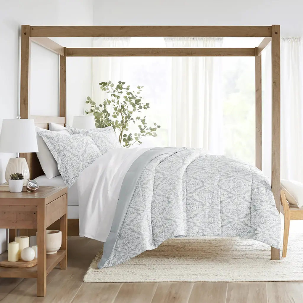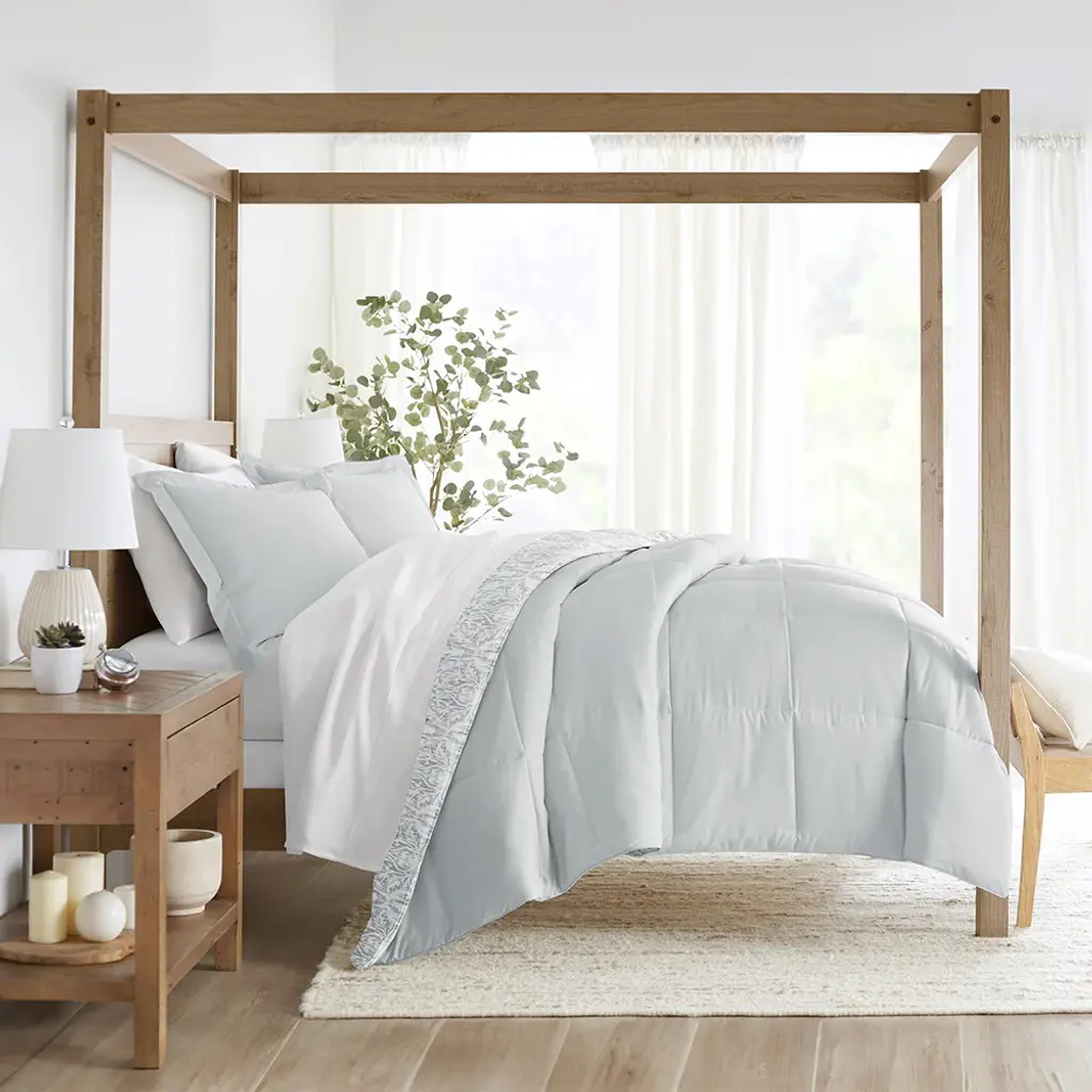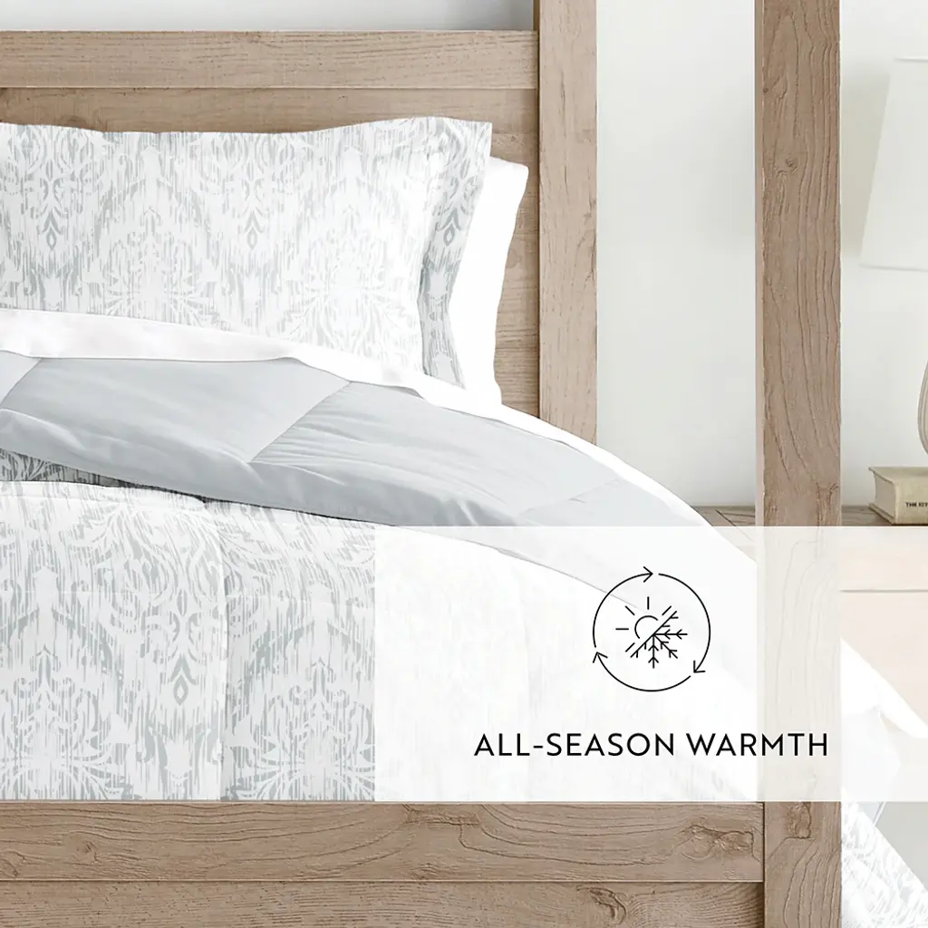 Give your bedding a brand new look and feel with this lightweight, all season patterned reversible comforter set. Presenting a down alternative quality, it's incredible softness makes it the perfect comforter to keep you cozy all year round. Our premium yarns are twice as durable than cotton, which means less risk of rips and wear. The sewn through box stitching prevents the fibers from shifting.