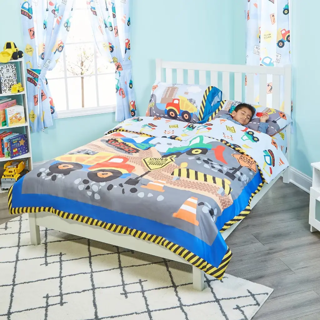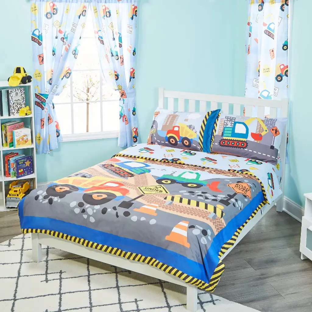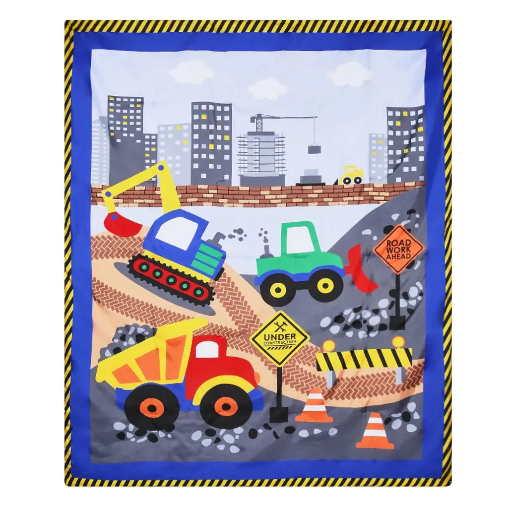 Everyday Kids Mermaid Twin/full Size Bed Comforter With Dump Trucks And Bulldozers; All Season Orange, Yellow And Blue Comforter