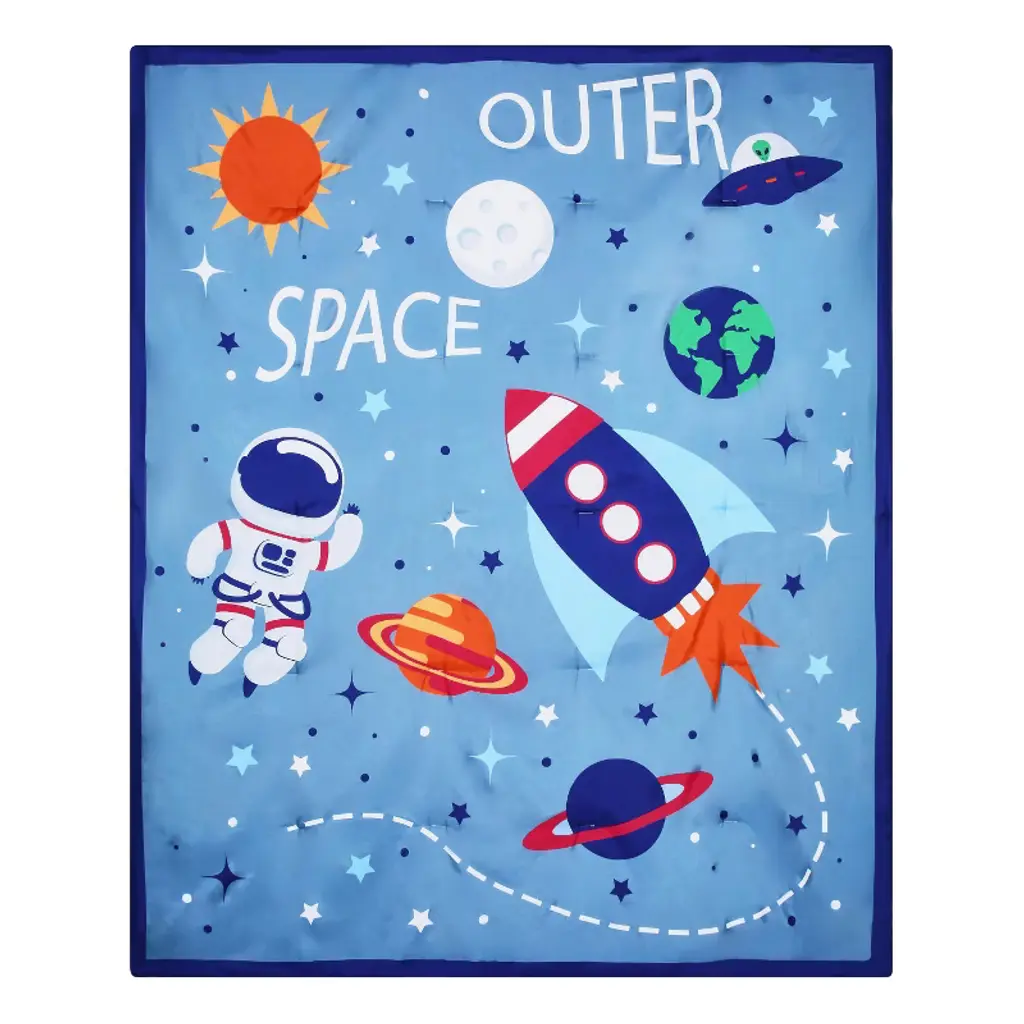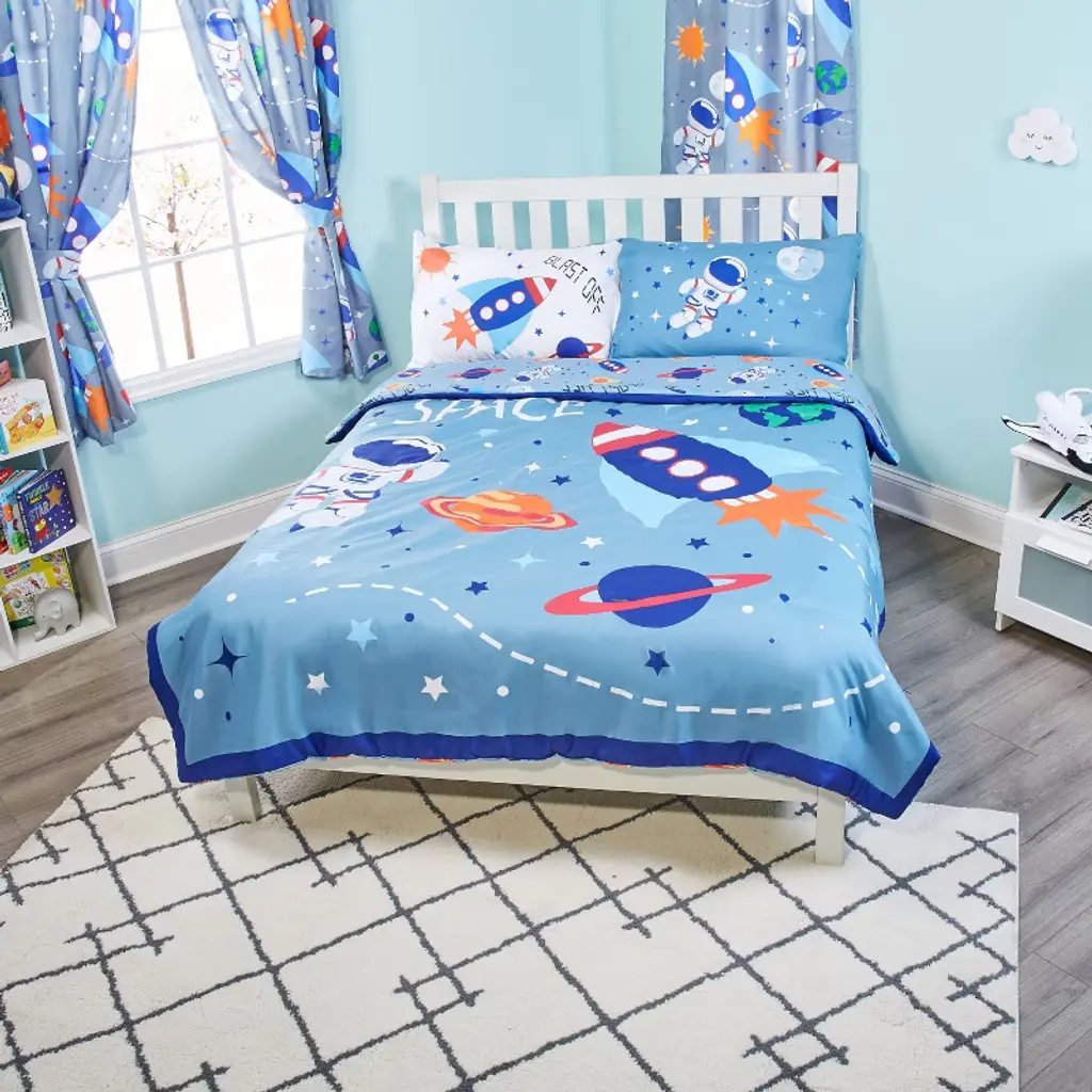 Enjoy his delightful reaction, like running to throw his little arms around his big-boy bed comforter when he sees the colorful planets, rocket and astronaut! You’ll love those moments as you read a bedtime story or snuggle as the sun rises! Made of 100% ultra-soft microfiber polyester, this comforter is made to last! The beautiful colors stay bright and the comforter holds its shape, even after multiple washings!