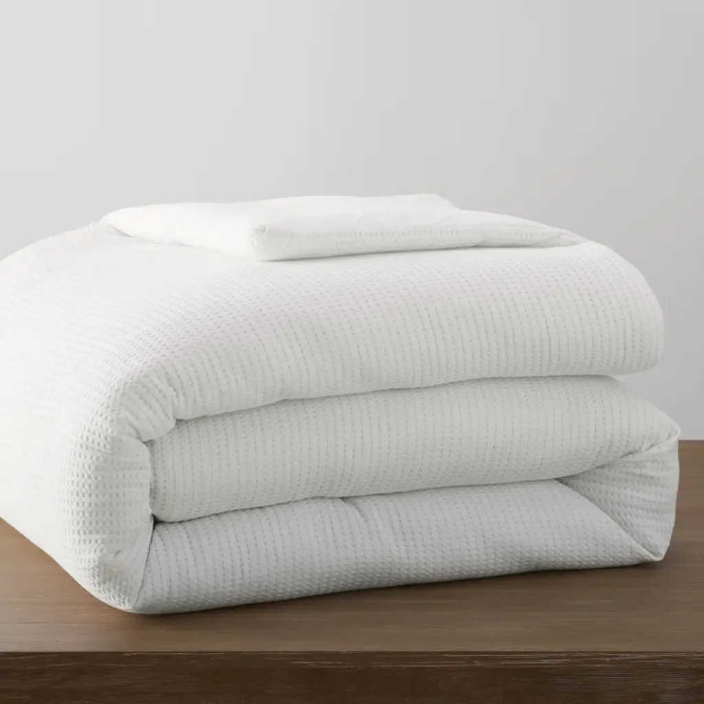 This 3-piece comforter set creates a cozy and inviting space in your bedroom to rest and recharge. Made from 100% standard cotton, this set includes a comforter and two matching pillow shams, all with a matching waffle weave design that adds texture and understated style to your space. We love that it comes in a variety of soothing hues to choose from. Filled with polyester, this comforter set is ideal for year-round use.