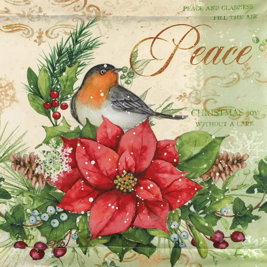 Beautiful colors and a festive design make this comforter set the perfect way to decorate your bedroom for the season! The cream colored comforter features colorful songbirds perched on lovely arrangements of poinsettia, pine, holly, ivy and berries. Set includes comforter and 2 pillow shams (twin set has 1 sham). Machine wash. Polyester; imported. Choose: Twin (86" x 66" comforter, 26" x 20" sham), Full/Queen (86" x 86" comforter, 26" x 20" shams) or King (86" x 101" comforter, 36" x 20" shams).