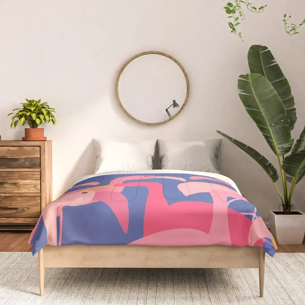 Flamingo Party / Whimsical Bird Illustration Comforter