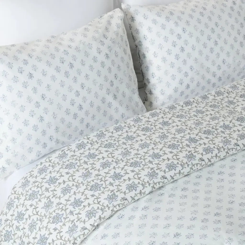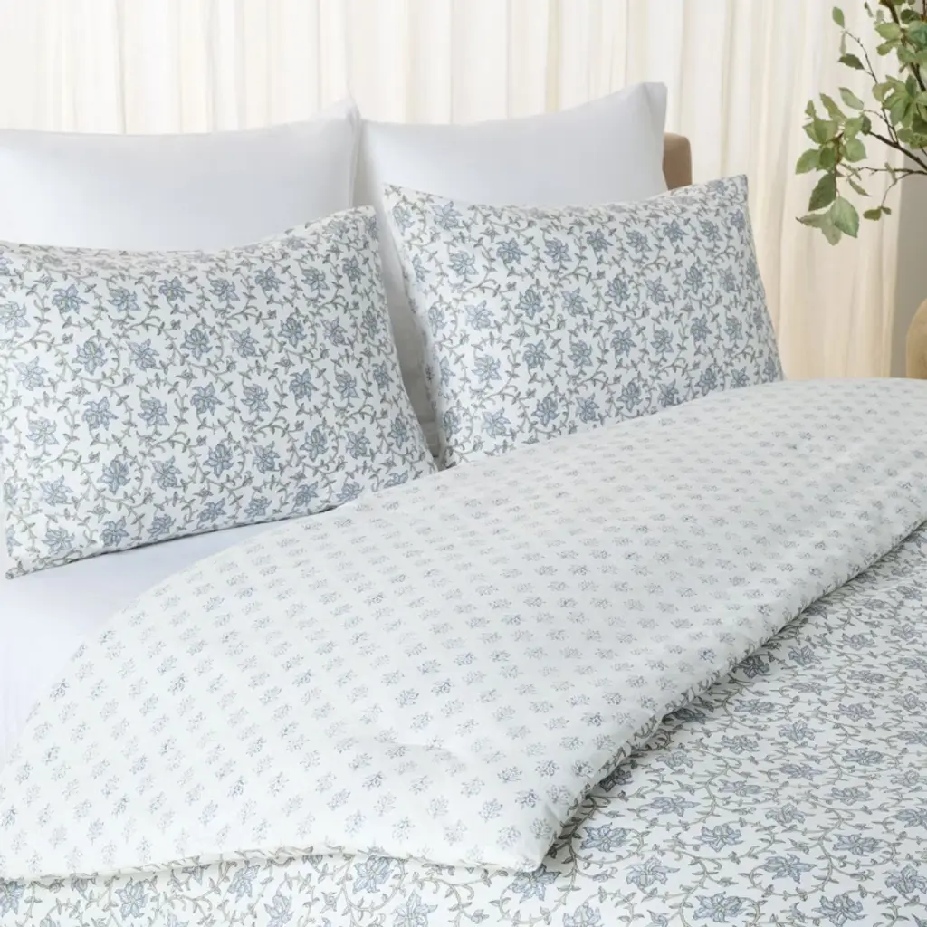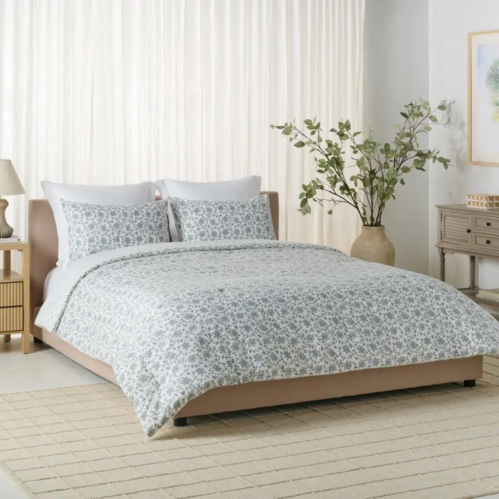 Transform your bedroom into a serene sanctuary with the Floral Reversible Comforter Set. Crafted from 100% cotton with a 144-thread count, this comforter set delivers a soft, breathable feel that ensures comfort throughout the seasons. The calming hues of blue mist and sage green create a peaceful ambiance in any space. Designed with versatility in mind, the comforter features a vibrant vine floral block print on one side and a small-scale block print on the revers, perfect for refreshing your bedroom style with ease. Subtle tufting adds gentle texture and visual dimension, enhancing the overall design while maintaining a clean and inviting look. The comforter is filled with 100% polyester at a 200 GSM fill weight, offering lightweight warmth ideal for year-round use and mild winters. Pillow covers are included and designed with envelope-style closures for a tidy, tailored finish. Packaged in a clear PVC bag with rope-style handles, this 3-piece comforter set is both practical and gift-ready. Whether for yourself or someone special, enjoy the perfect balance of comfort, beauty, and style with this charming addition to your bedroom decor.