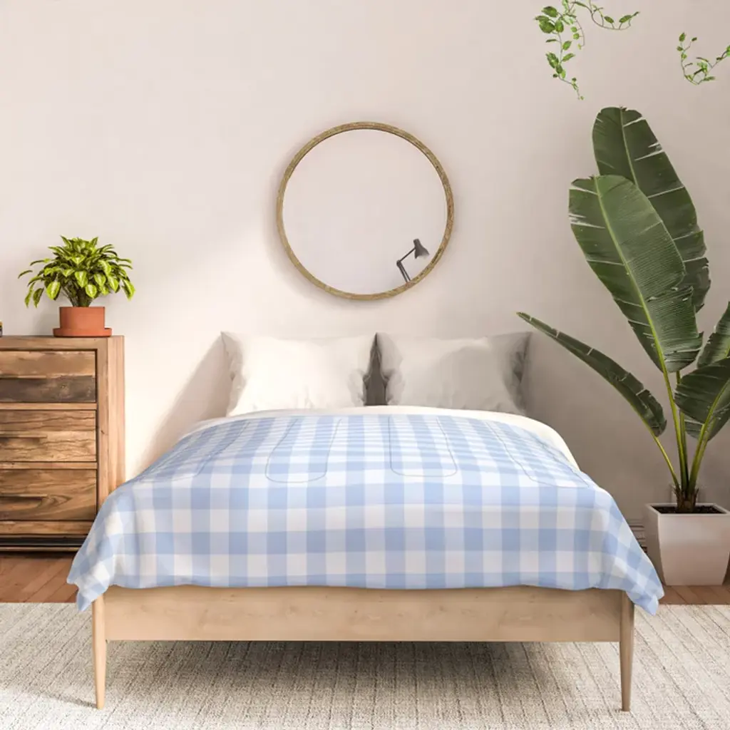 Gingham Plaid Pattern - Natural Sky Blue Comforter