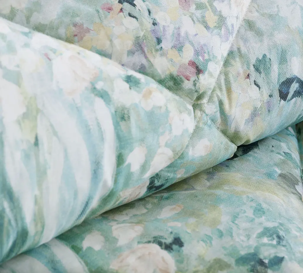 Like artwork for the bed, the Giverny design depicted on our duvet and shams was created by artists in our San Francisco studio. Blurring the lines with unmixed colors to offer the bare impression of form and simulate light, the pattern draws its inspiration from Monet’s Garden.