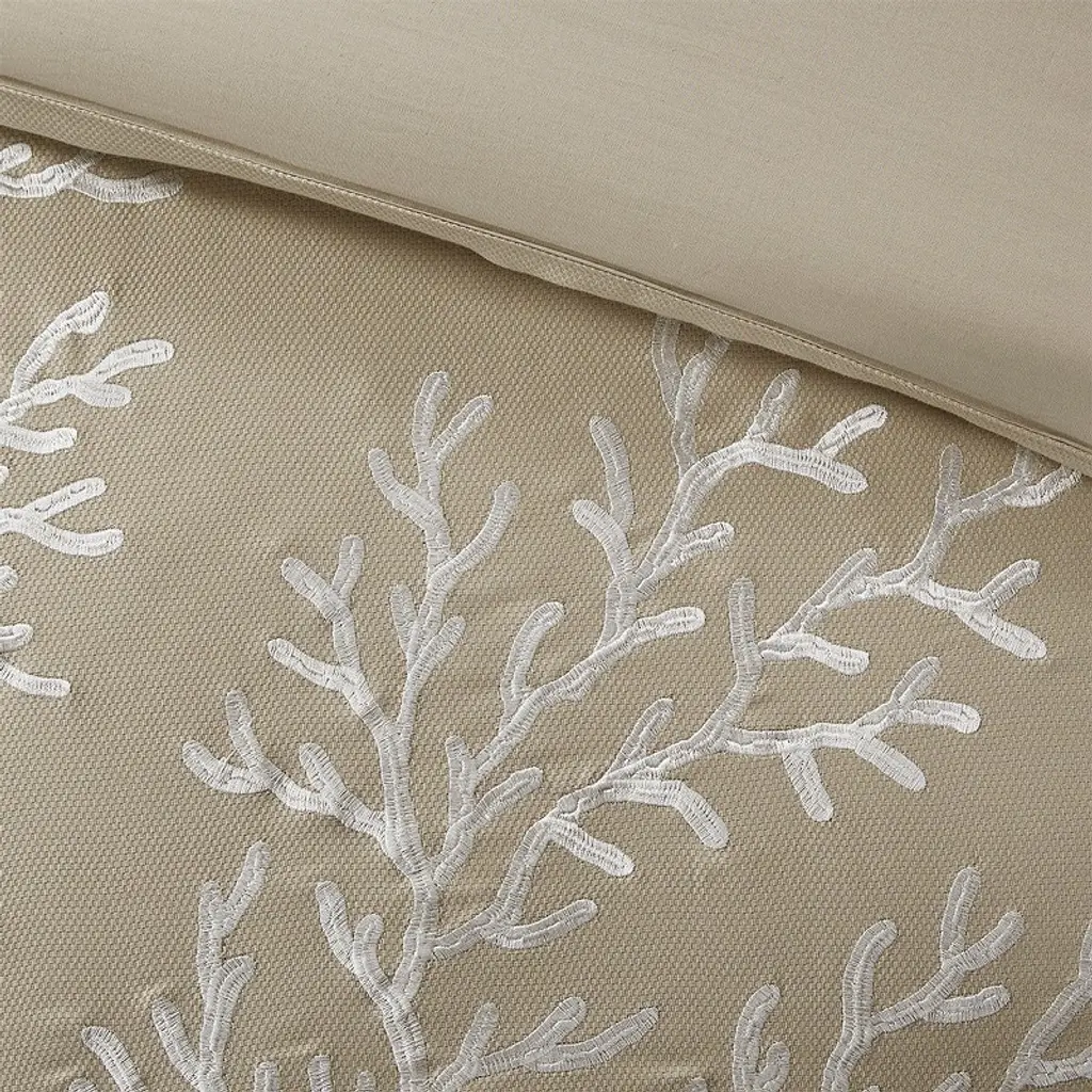 Gracie Mills Douglass 6-peice Cotton Jaquard Comforter Set With Coral Embroidery - California King - Khaki