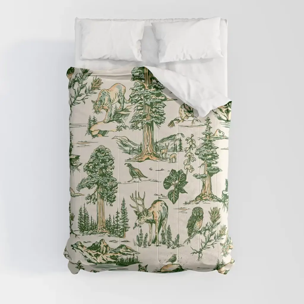 Let your child snuggle up with their favorite forest friends in the Kids Forest Animals Plush Reversible Comforter Set. The cozy comforter and matching shams (1 in Twin) feature a cute forest animal print that will make them feel like they're camping in the woods, while the plush reverse is super soft and cuddly. The hypoallergenic polyester comforter filling contains no allergens and is treated to be dustproof, allowing your child to sleep comfortably. Additionally, this machine washable kids comforter set is OEKO-TEX certified and features an antimicrobial treatment to keep the fabric fresh and long-lasting.